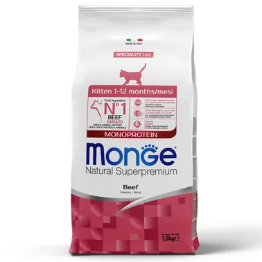 Сухой корм Monge Cat Speciality Line Monoprotein для котят и беременных кошек, из говядины 1,5 кг
