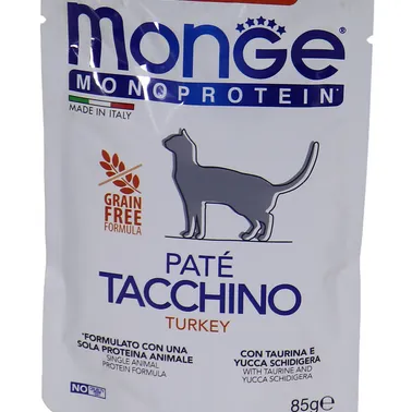 Влажный корм Monge Cat Monoprotein для взрослых кошек, из индейки, паучи 85 г