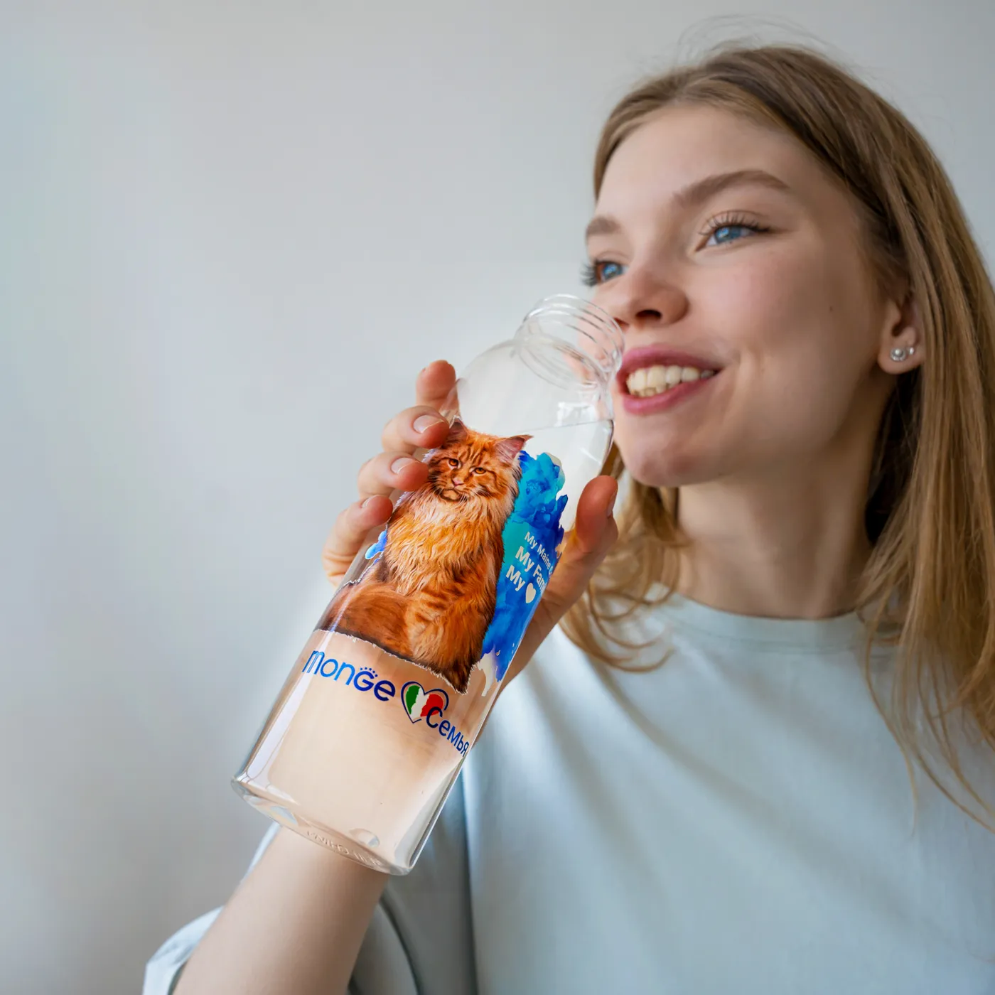 Бутылка для воды Monge Gift Shop collection 2023 с тематическим дизайном, посвященным породе Мейн-Кун. Аксессуар предназначен для транспортировки воды для питомца во время прогулок или путешествий. Изделие выполнено в коллекционном дизайне 2023 года.