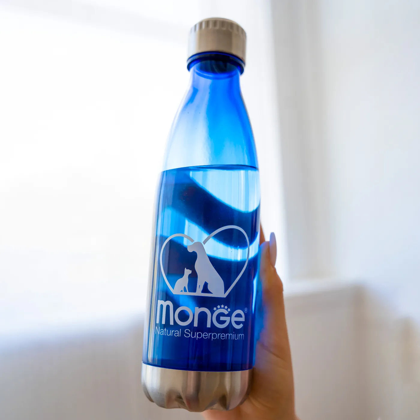 Бутылка для воды из премиум-коллекции Gift Shop 2023 от бренда Monge. Аксессуар выполнен из пластика и относится к сувенирной продукции. Коллекция Gift Shop представлена в виде подарочных товаров для владельцев домашних животных.