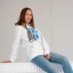 Толстовка выполнена в белом цвете. Размер соответствует маркировке M. Плотность материала составляет 280 г/м².