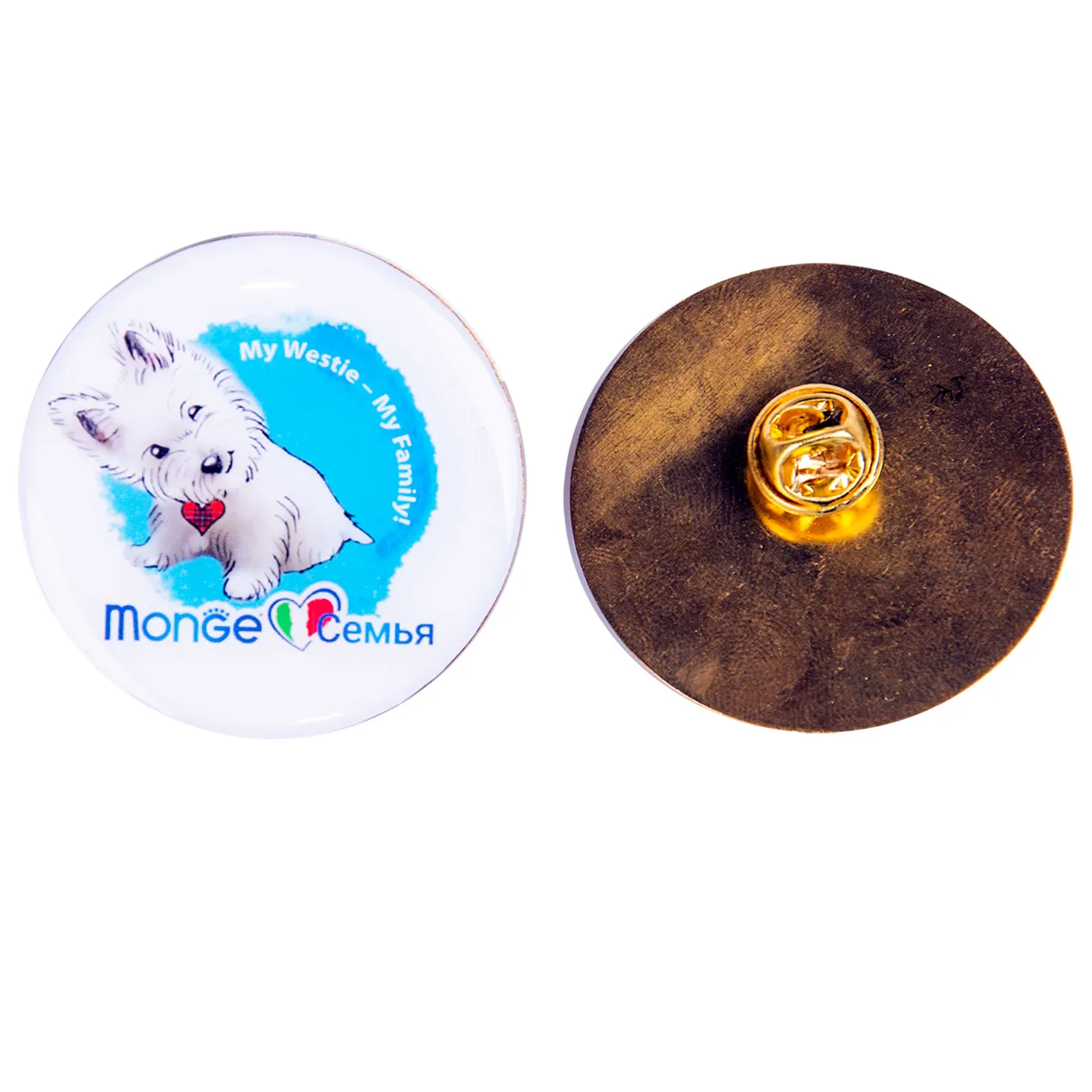 Значок с изображением вест-хайленд-уайт-терьера от бренда Monge. Аксессуар может использоваться как элемент декора или для идентификации. Изготовлен из материалов, соответствующих стандартам качества бренда. Подходит для владельцев собак породы вест-хайленд-уайт-терьер.
