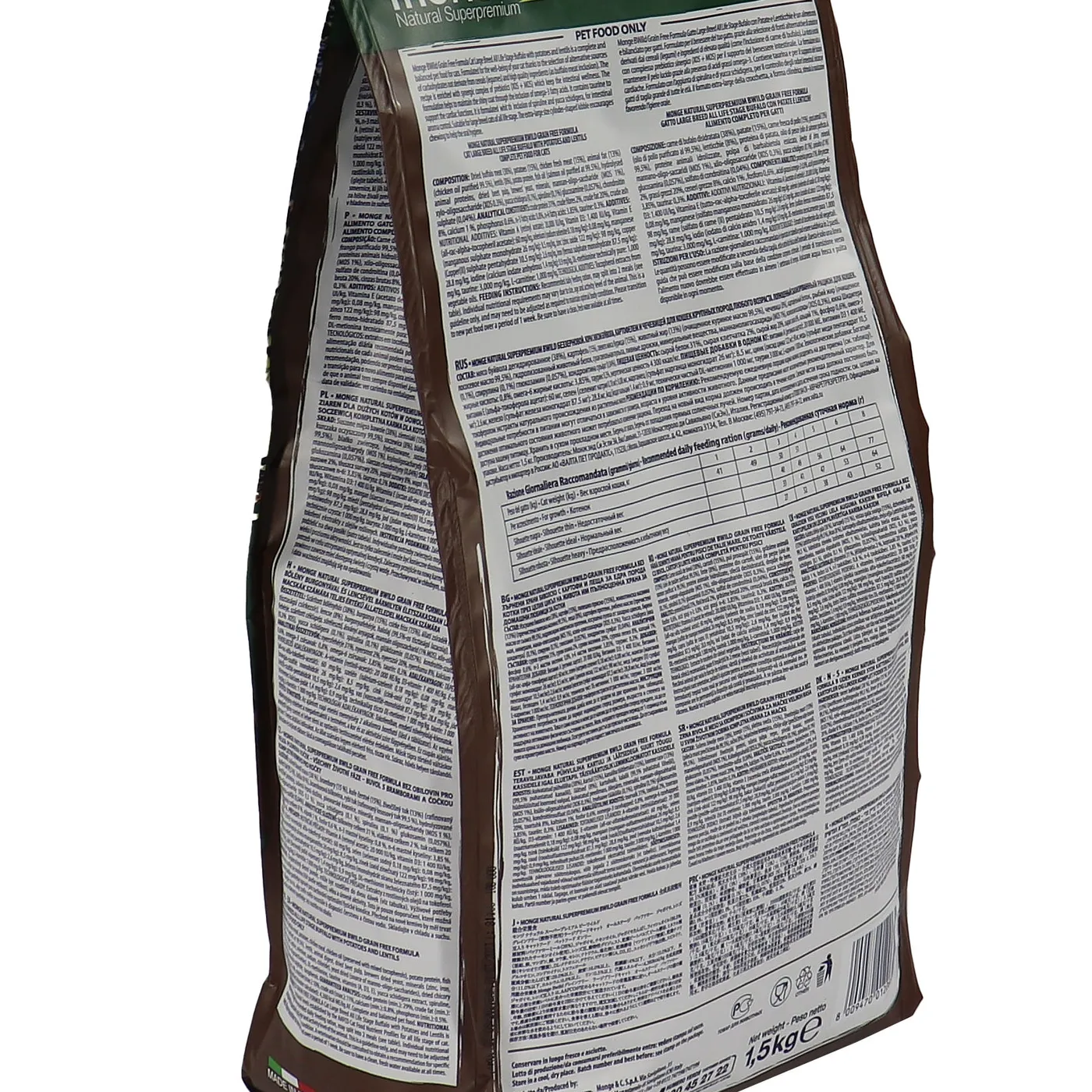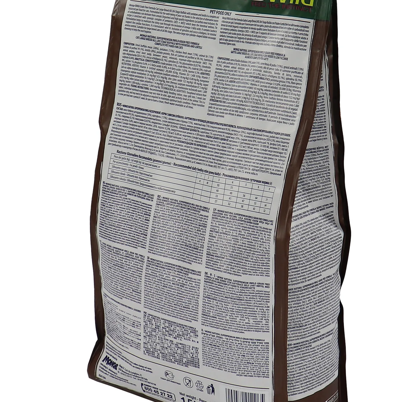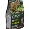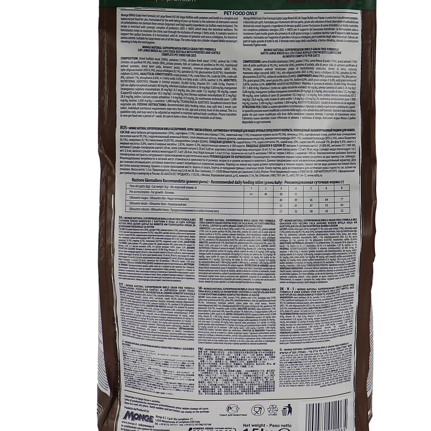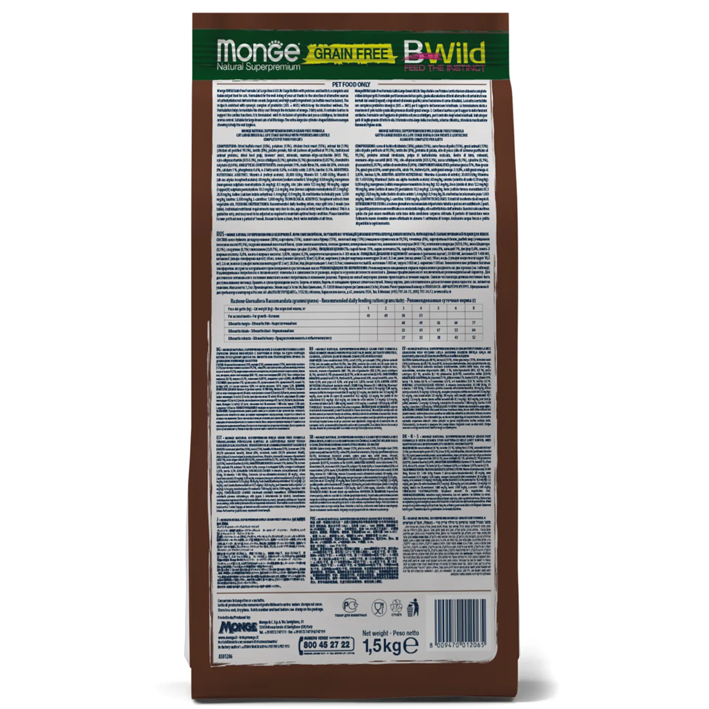 Полнорационный сухой корм Monge Cat BWild GRAIN FREE для котят и кошек крупных пород. Основной источник белка — дегидрированное и свежее мясо буйвола. Рецепт не содержит зерновых культур, в качестве источника углеводов используется картофель и чечевица. Состав обогащен глюкозамином, хондроитином, кальцием и фосфором для поддержки костной системы и суставов, а также пребиотиками MOS и XOS для пищеварения. Корм подходит для животных всех возрастов, включая период роста.