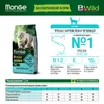 Monge Cat BWild GRAIN FREE — полнорационный беззерновой сухой корм для взрослых кошек. Основной источник белка — треска. Рецепт содержит картофель и чечевицу в качестве источников углеводов. В состав включены пребиотики MOS и XOS, L-карнитин, таурин, а также комплекс витаминов и минералов.