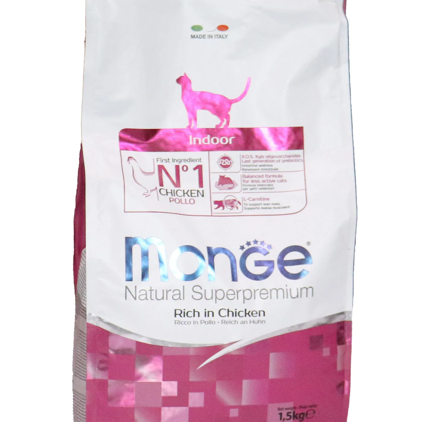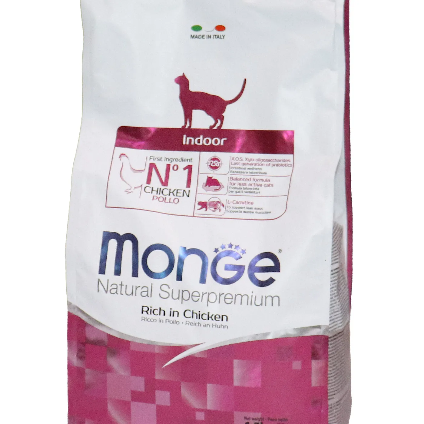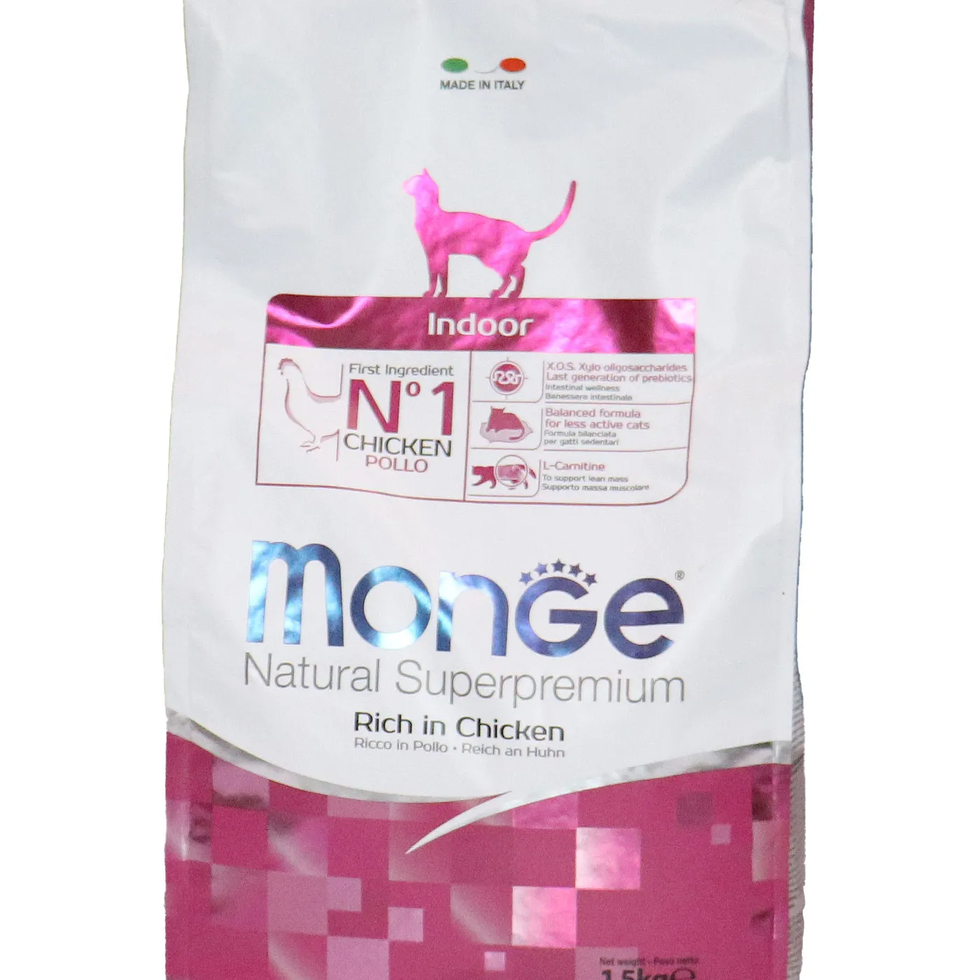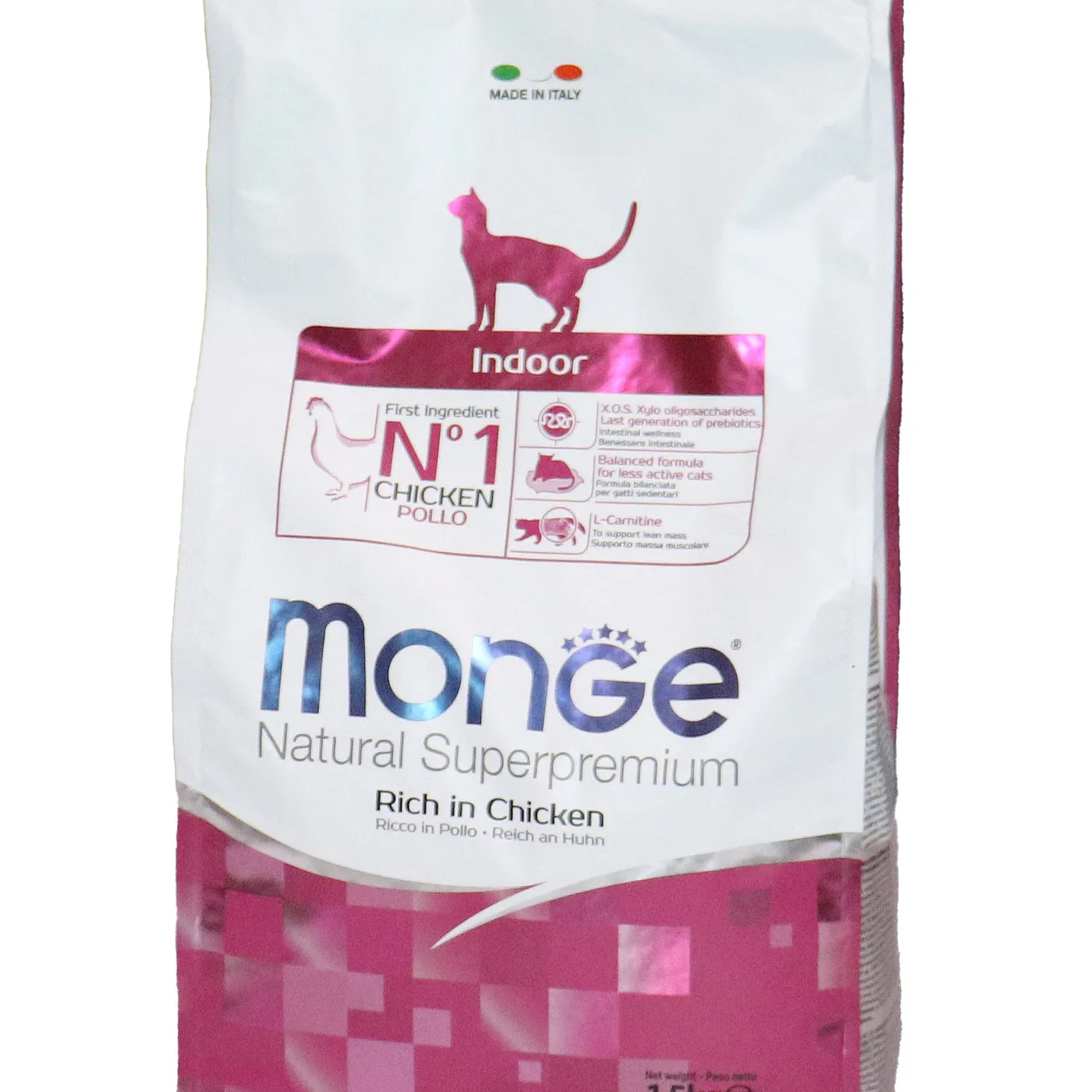 Полнорационный сухой корм Monge Cat Daily Line Indoor для домашних кошек с курицей. Разработан для животных с низкой физической активностью и склонных к набору веса. Формула содержит L-карнитин, пребиотики MOS и XOS, таурин, а также имеет умеренное содержание жиров и калорий. Корм не содержит искусственных красителей и консервантов.