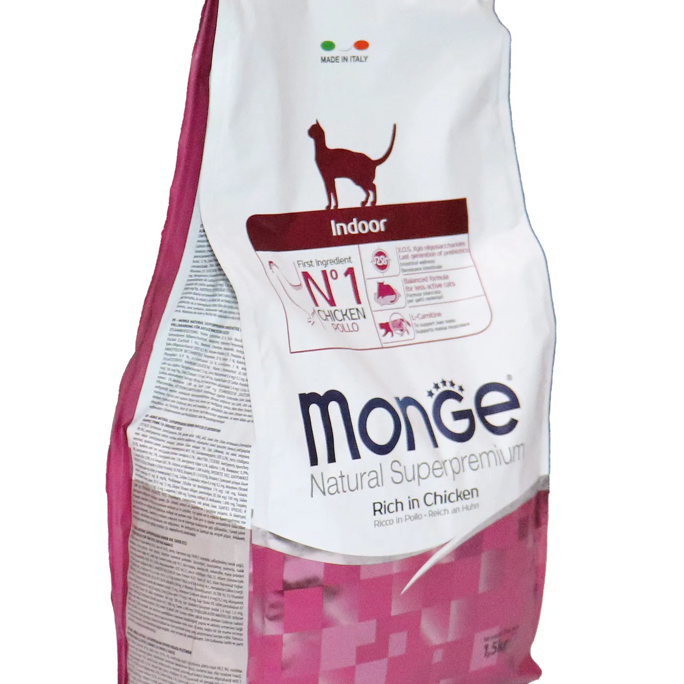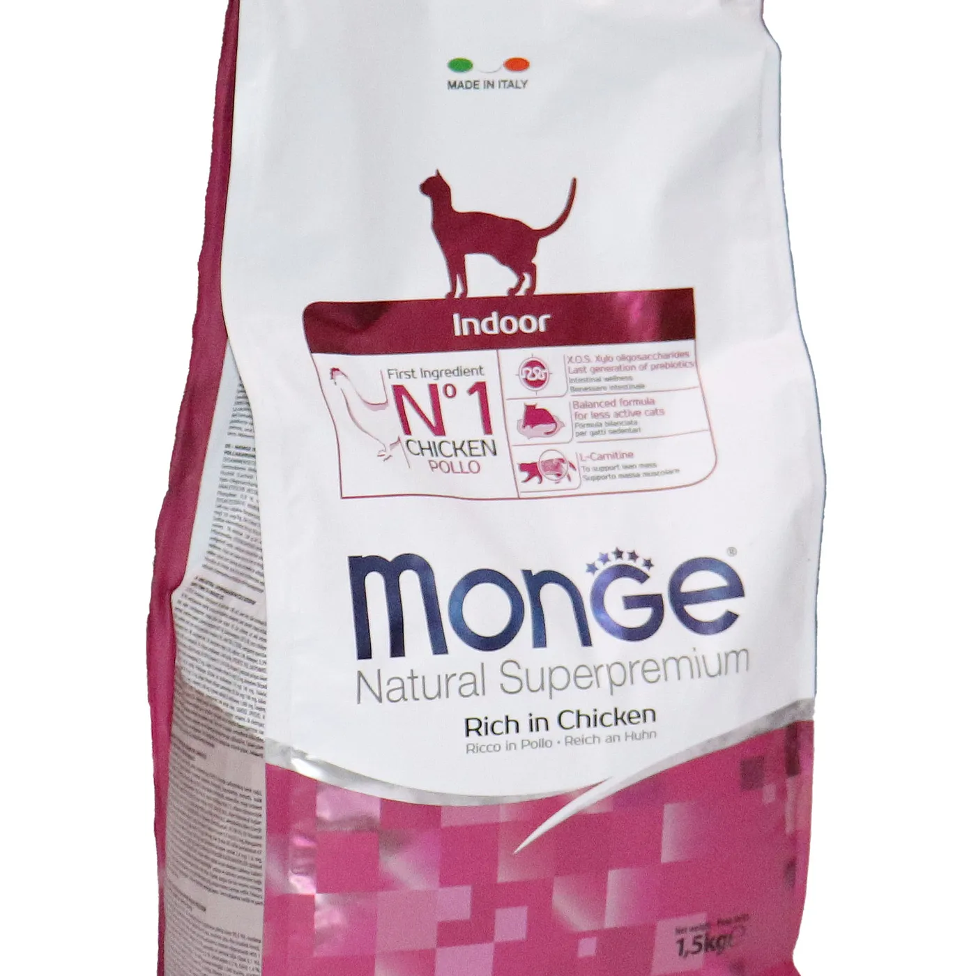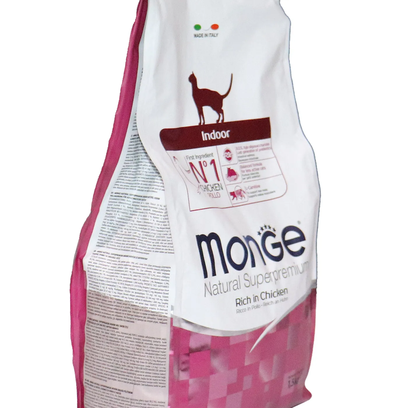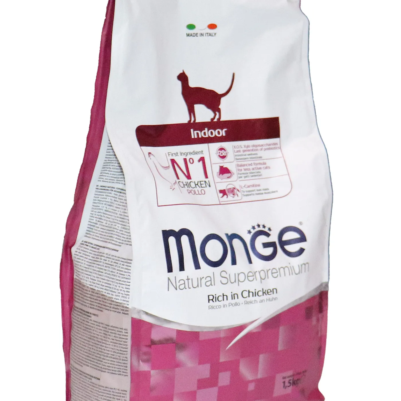 Полнорационный сухой корм Monge Cat Daily Line Indoor для домашних кошек с курицей. Разработан для животных с низкой физической активностью и склонных к набору веса. Формула содержит L-карнитин, пребиотики MOS и XOS, таурин, а также имеет умеренное содержание жиров и калорий. Корм не содержит искусственных красителей и консервантов.