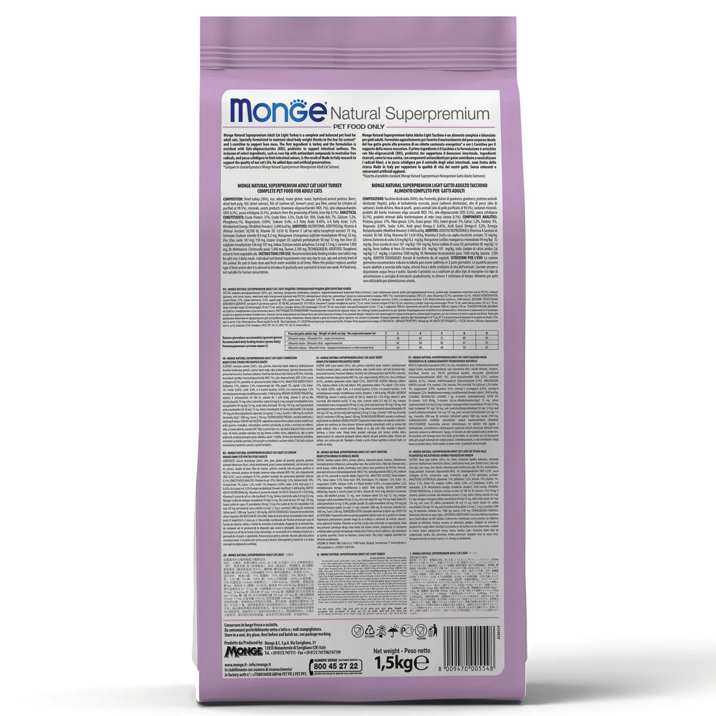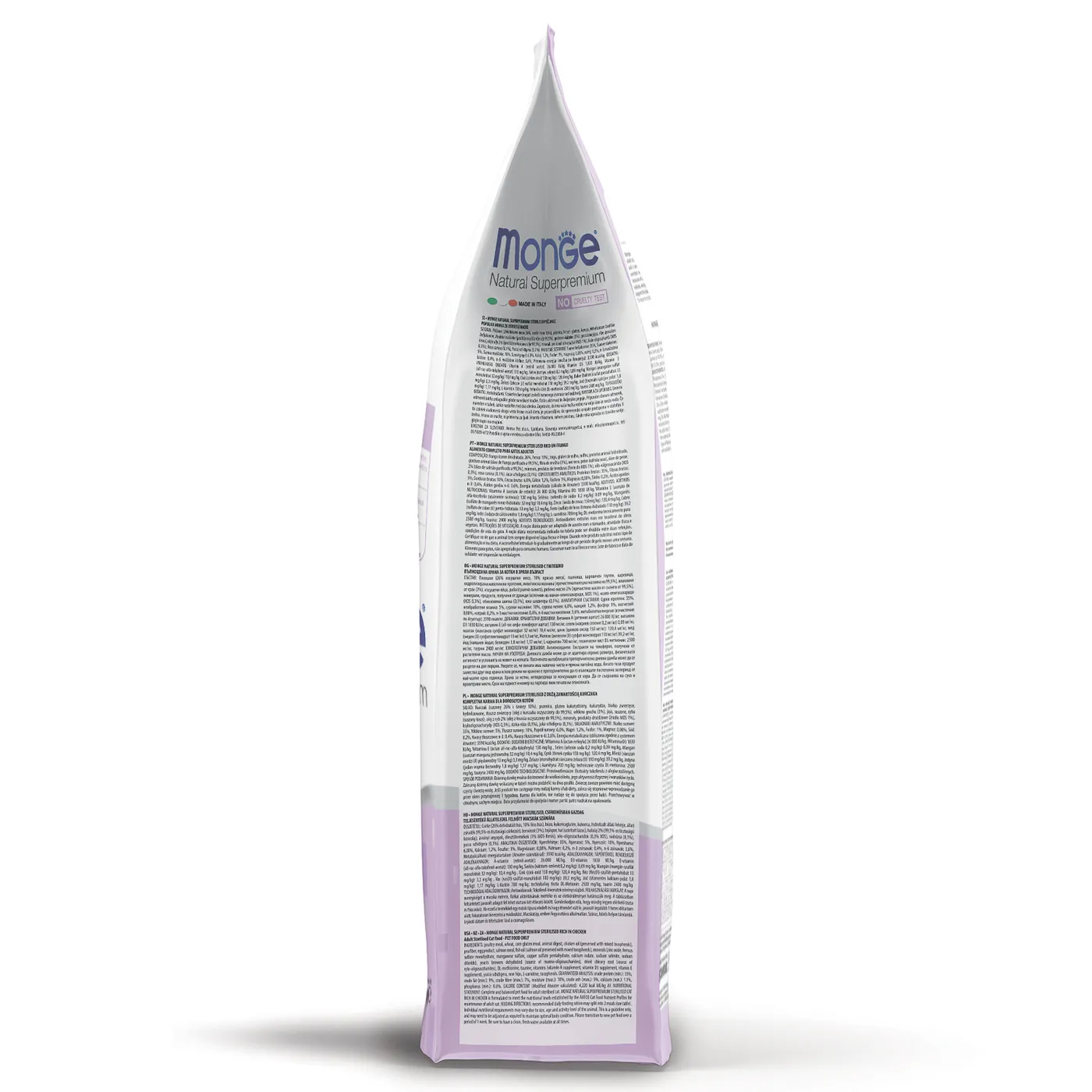 Сухой корм Monge Cat Daily Line Sterilised предназначен для стерилизованных кошек и кастрированных котов. Рецепт на основе курицы включает дегидрированное и свежее мясо. Формула содержит пониженное количество калорий для контроля веса, обогащена клетчаткой медленной ферментации и пребиотиками M.O.S. и X.O.S. для поддержания баланса кишечной микрофлоры. В состав включены витамин Е в качестве антиоксиданта, L-карнитин и таурин. Корм не содержит ГМО, искусственных красителей и ароматизаторов.