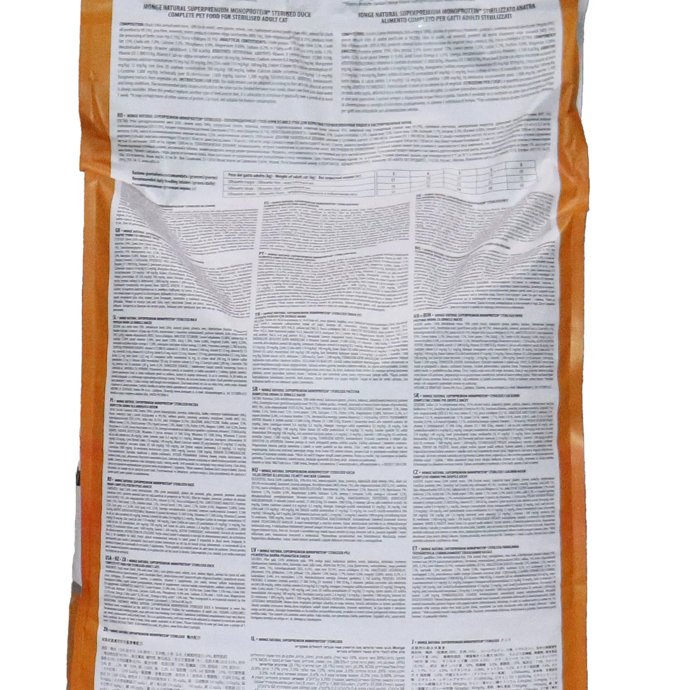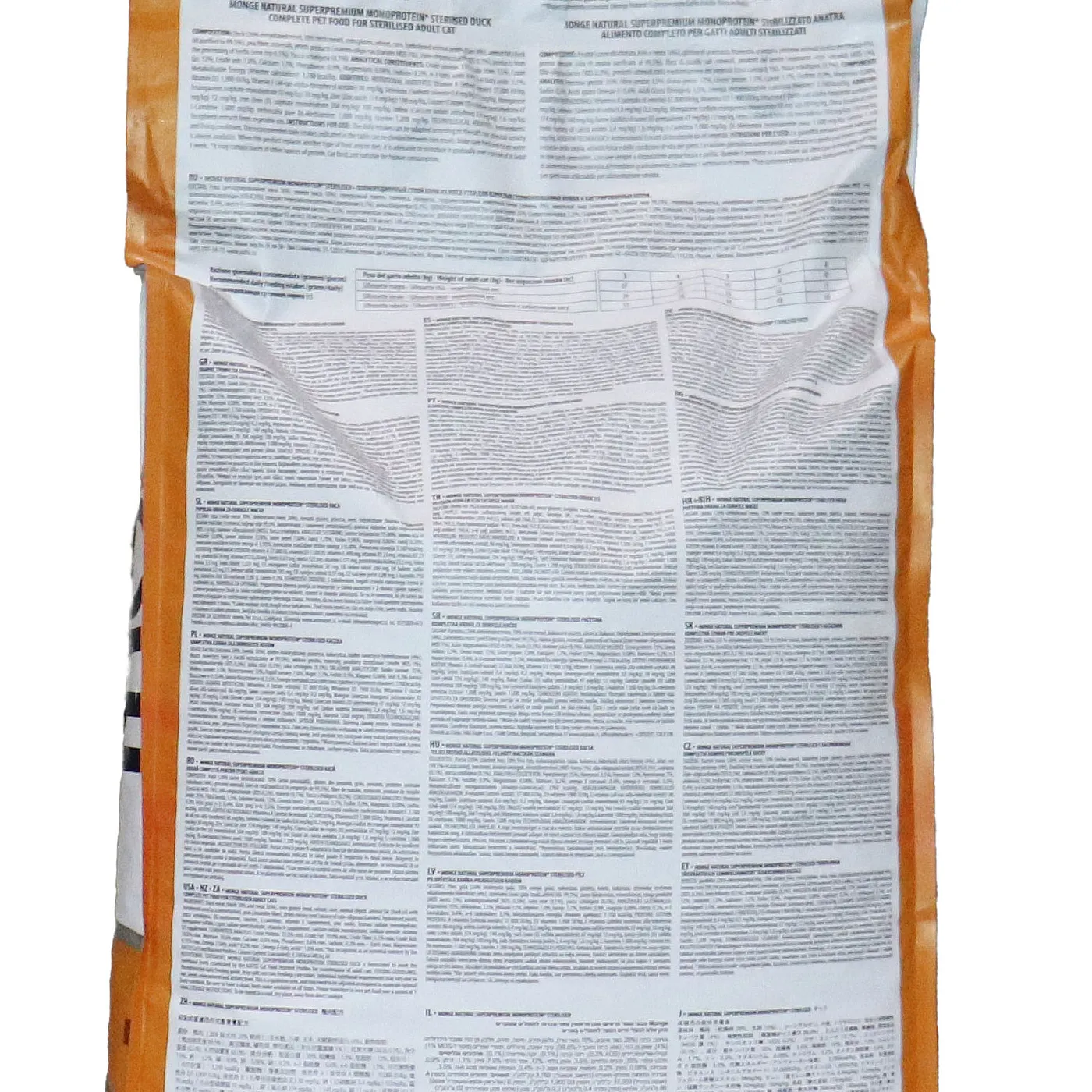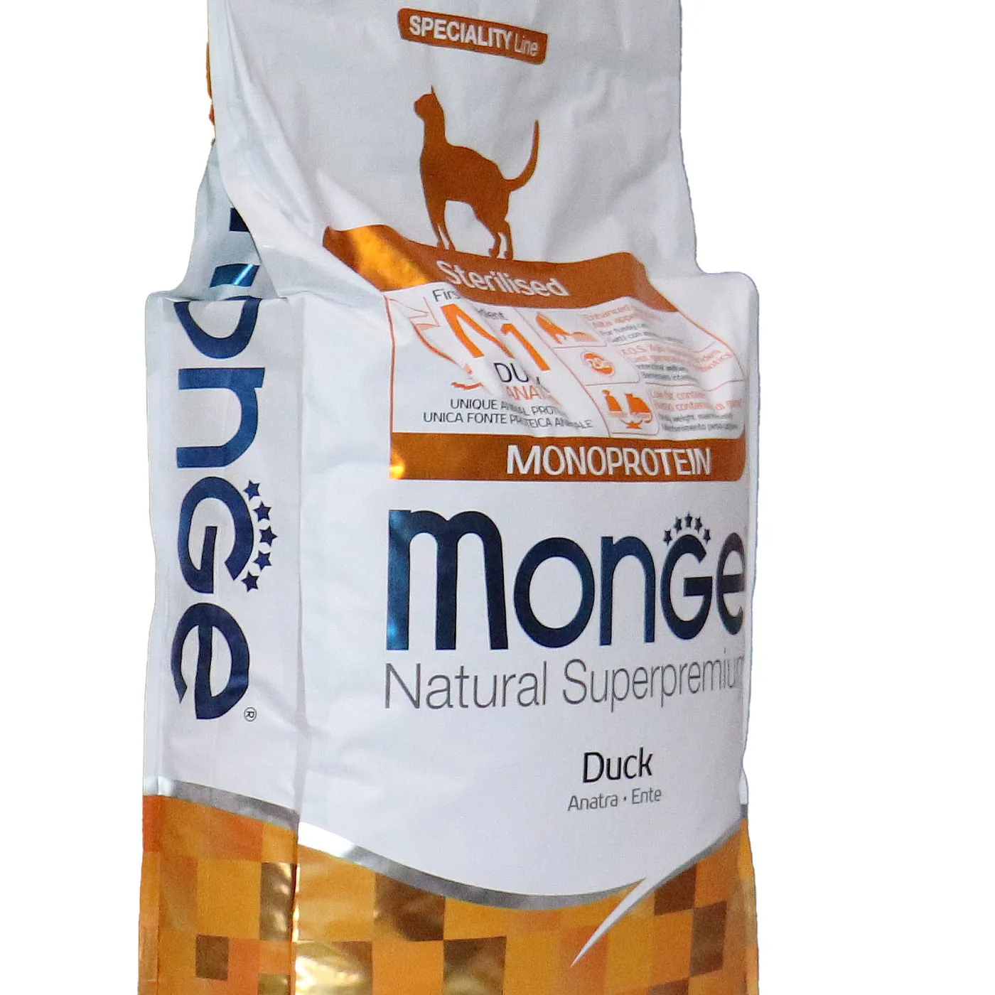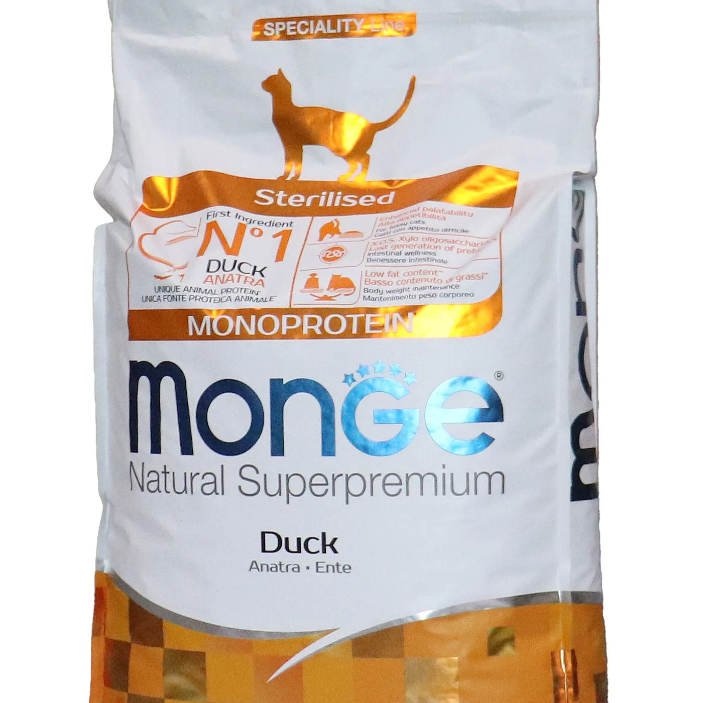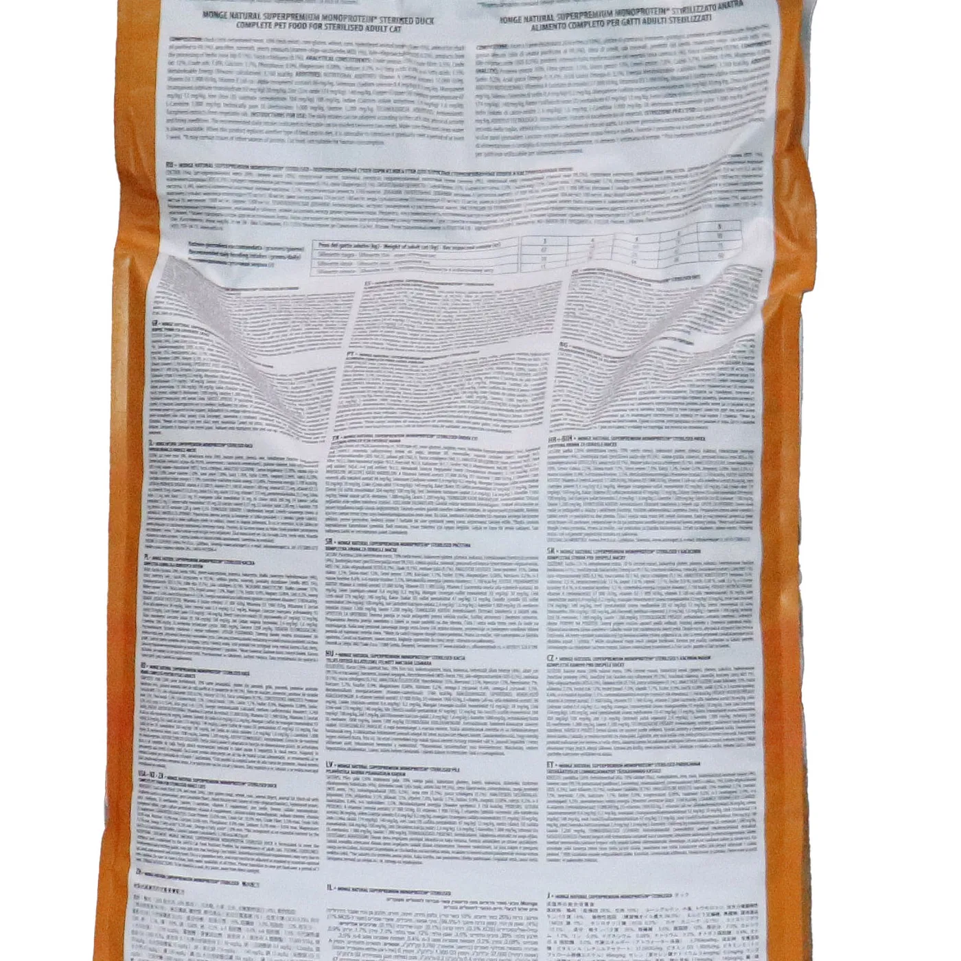 Сухой корм Monge Cat Speciality Line Monoprotein Sterilised — полнорационный рацион для стерилизованных кошек и кастрированных котов. Основной источник животного белка — мясо утки (дегидрированное и свежее). Формула содержит пониженное количество жира и калорий, что способствует поддержанию веса. В состав включены пребиотики MOS и XOS для поддержания баланса кишечной микрофлоры, а также витамин Е в качестве антиоксиданта. Корм не содержит искусственных красителей, ароматизаторов и ГМО.