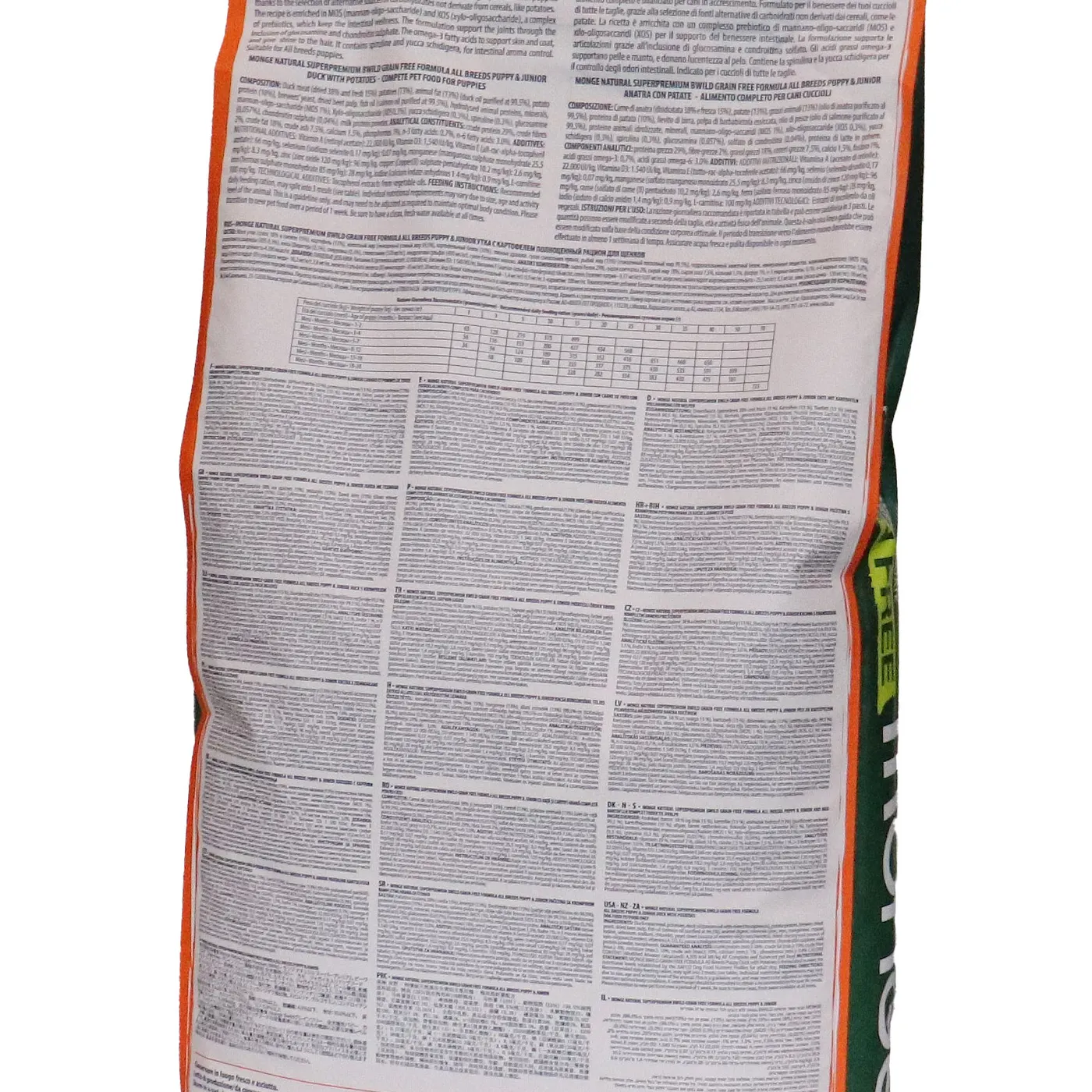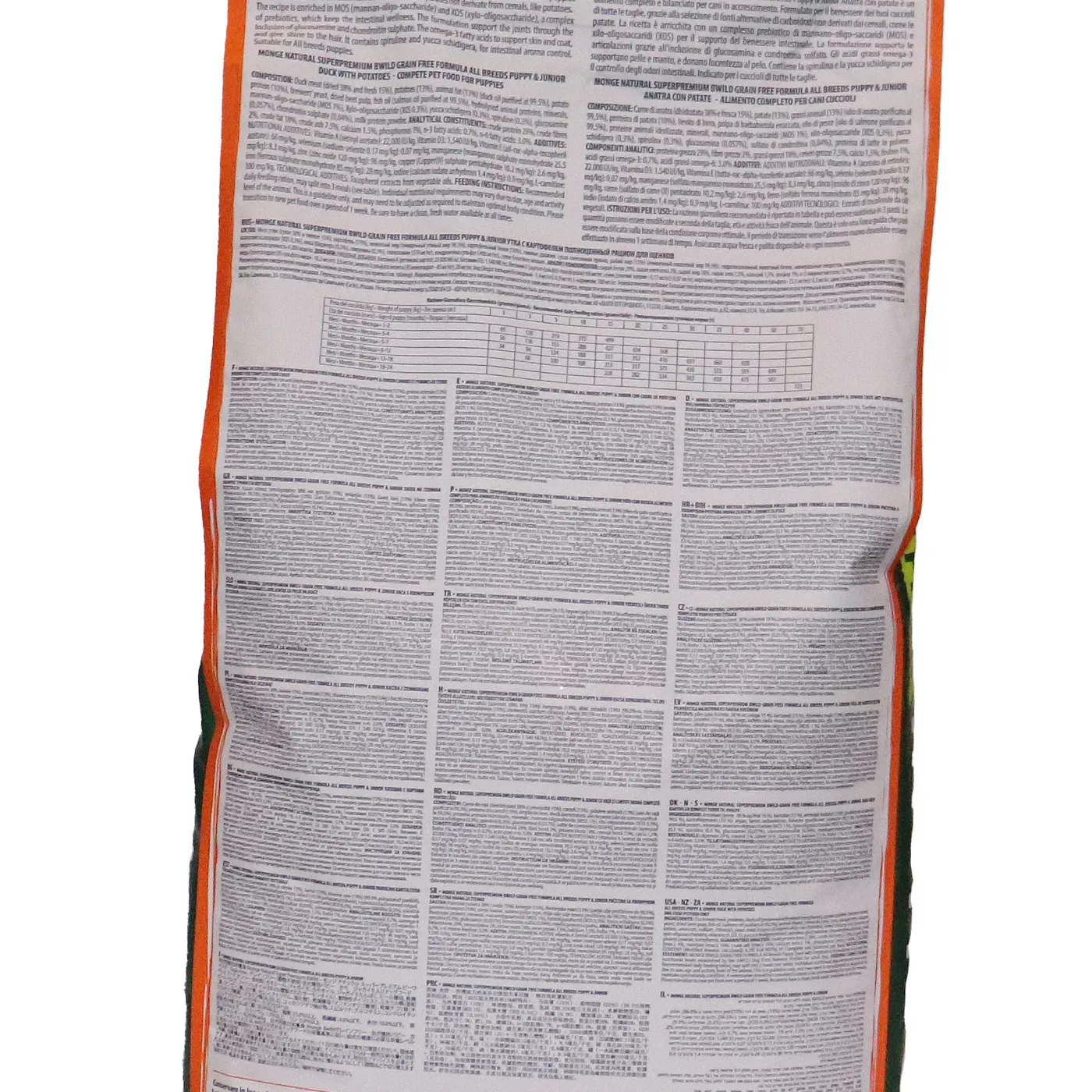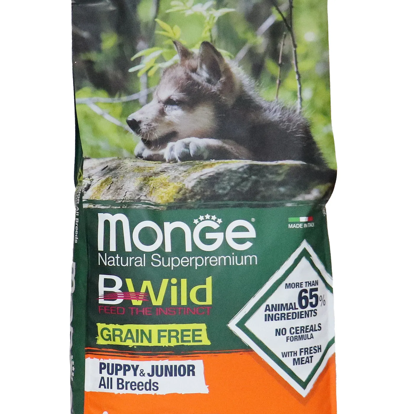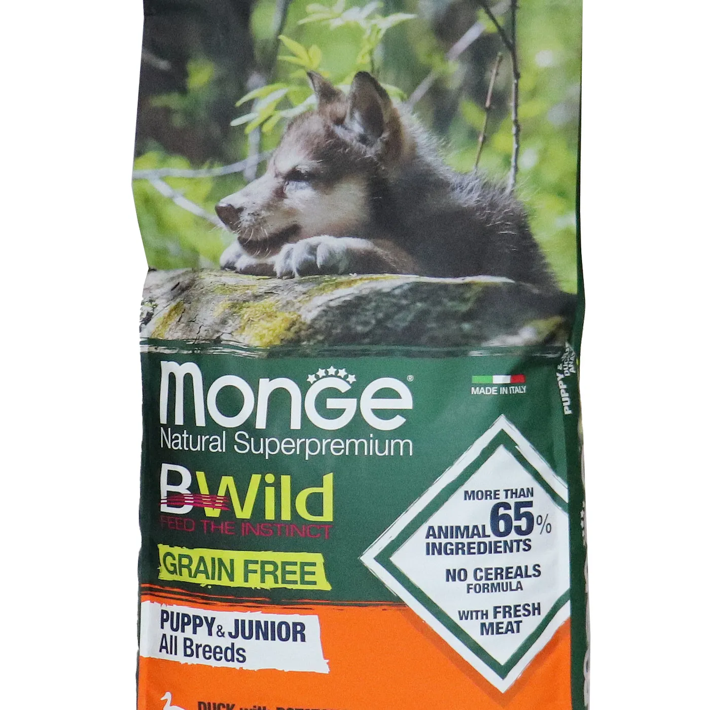 Сухой корм Monge Dog BWild GRAIN FREE Puppy & Junior предназначен для щенков всех пород в возрасте от 1 до 12 месяцев. Рецептура основана на мясе утки (53% в сумме из дегидрированного и свежего) и картофеле в качестве источника углеводов. Корм не содержит зерна, что делает его подходящим для животных с чувствительностью к глютену. В состав включены глюкозамин и хондроитин для поддержки развития суставов, а также пребиотики MOS и XOS для пищеварения.