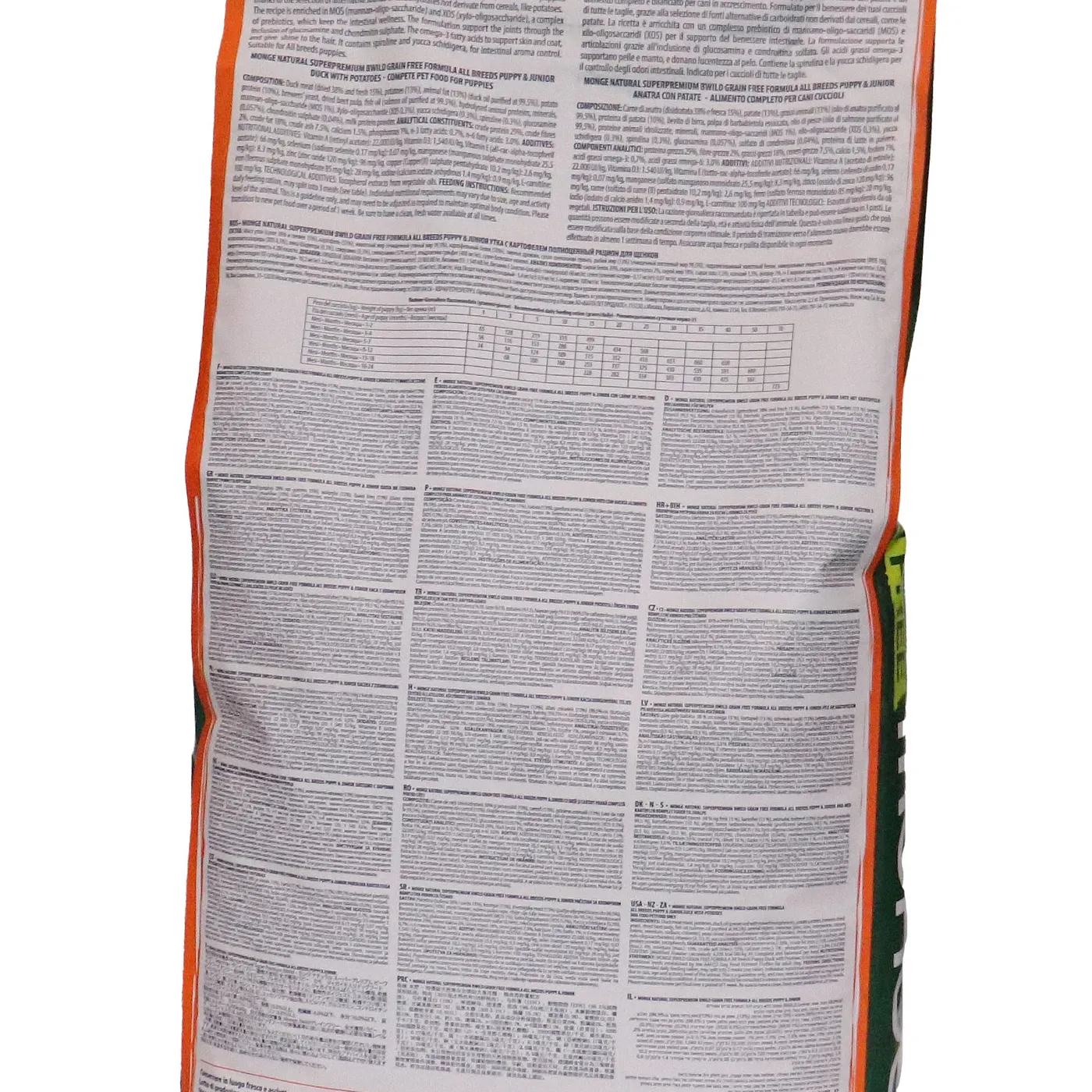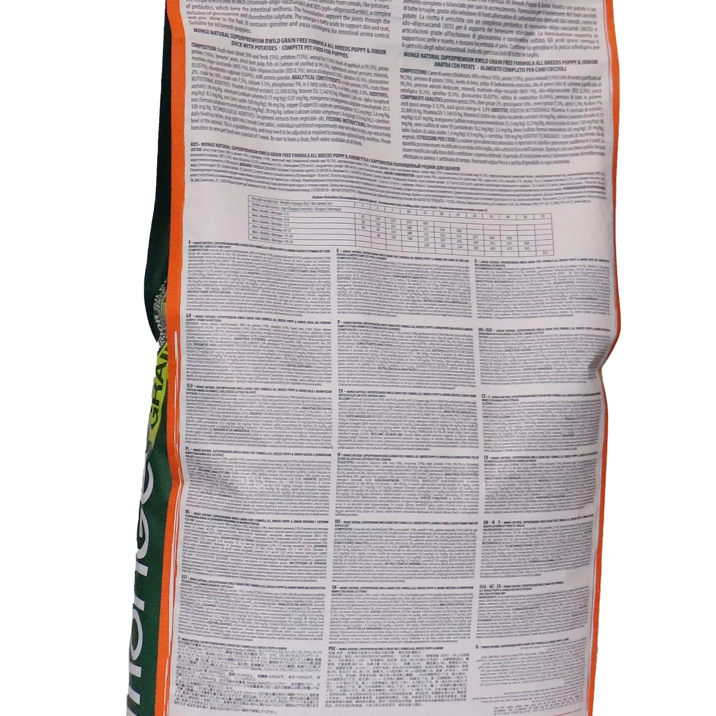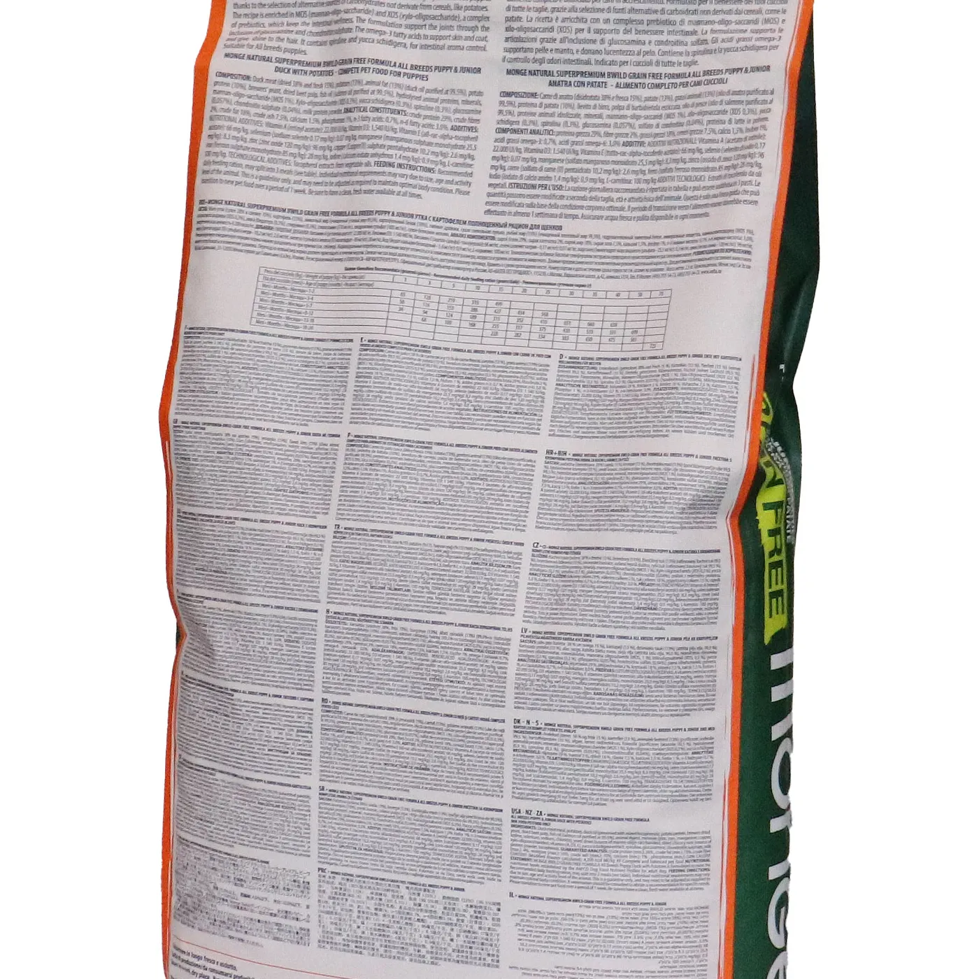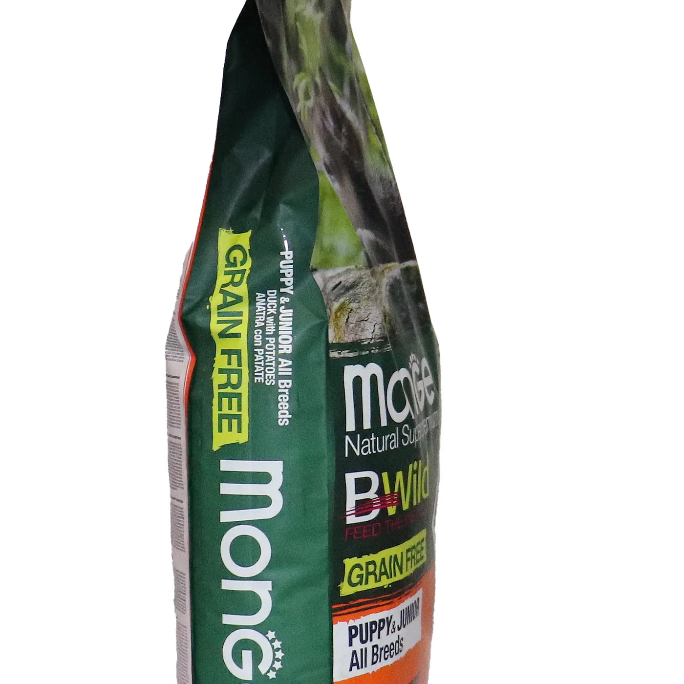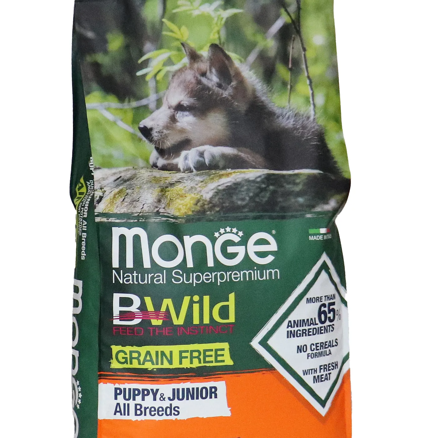 Сухой корм Monge Dog BWild GRAIN FREE Puppy & Junior предназначен для щенков всех пород в возрасте от 1 до 12 месяцев. Рецептура основана на мясе утки (53% в сумме из дегидрированного и свежего) и картофеле в качестве источника углеводов. Корм не содержит зерна, что делает его подходящим для животных с чувствительностью к глютену. В состав включены глюкозамин и хондроитин для поддержки развития суставов, а также пребиотики MOS и XOS для пищеварения.