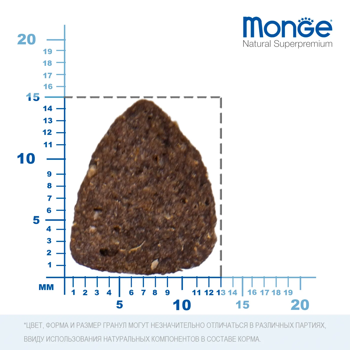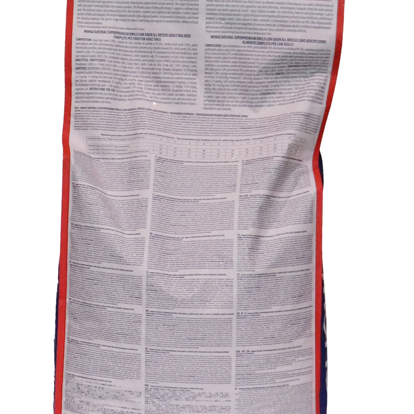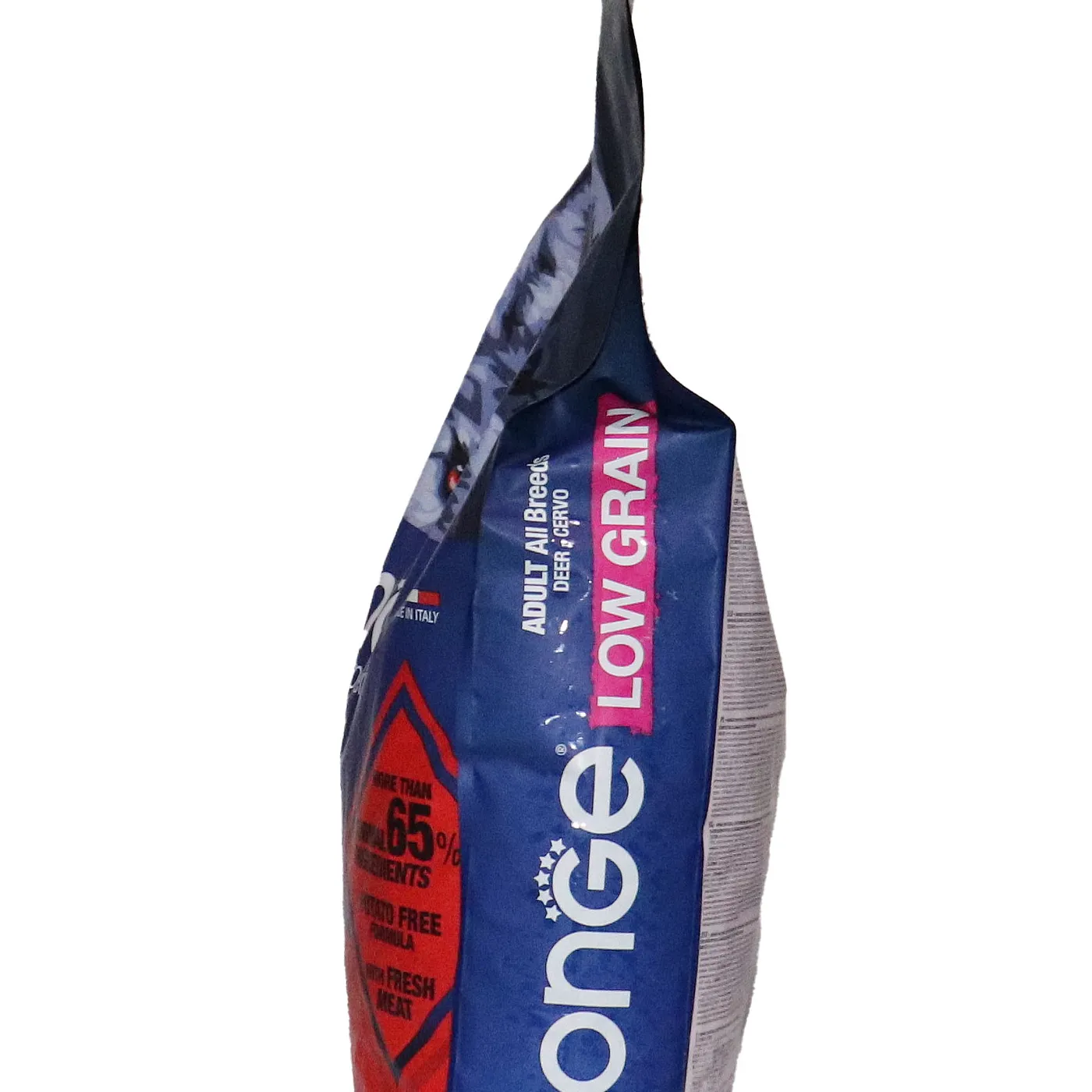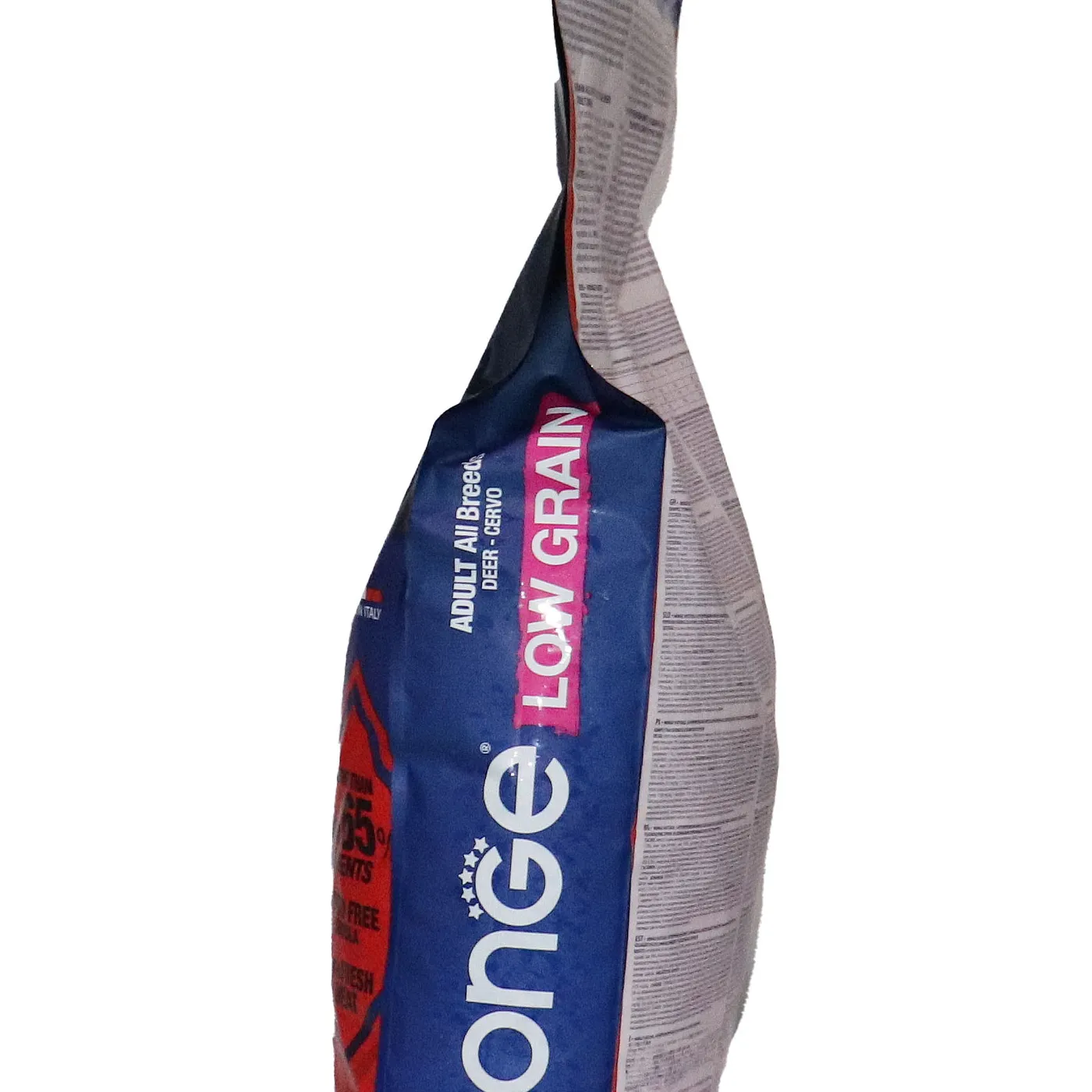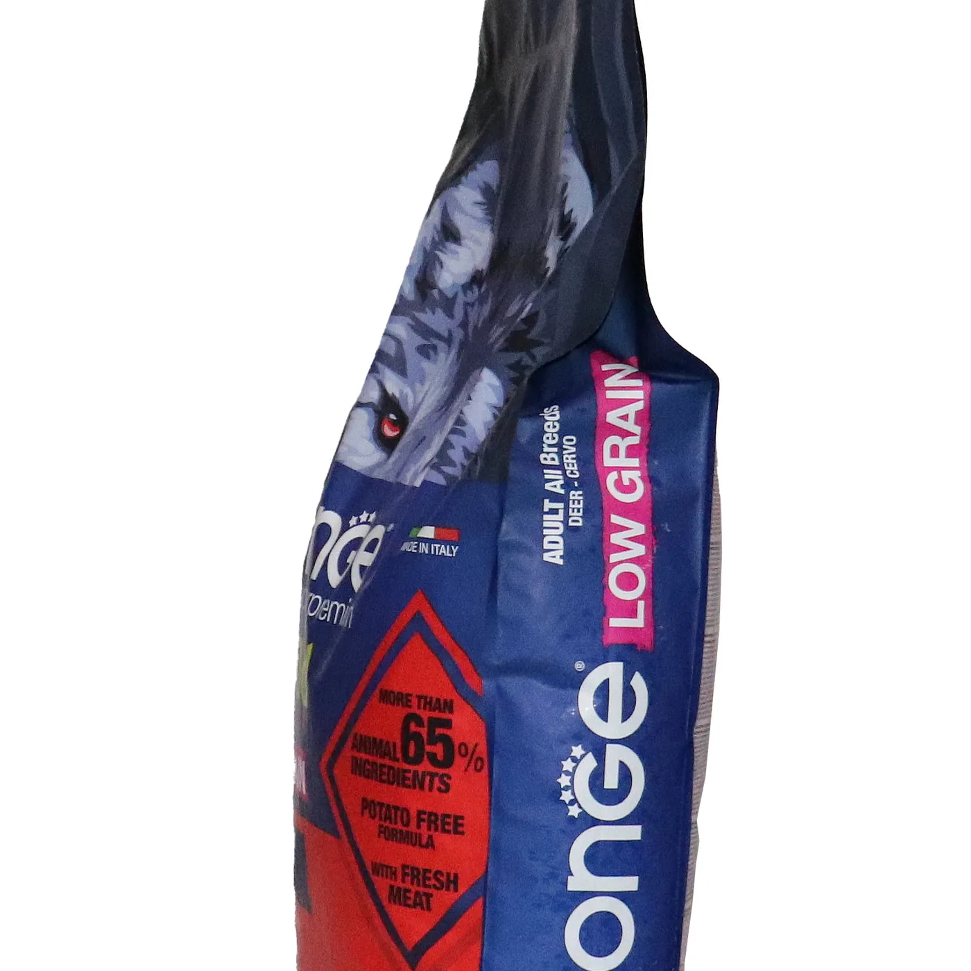 Сухой корм Monge Dog BWild LOW GRAIN для взрослых собак всех пород. Рецепт на основе дегидрированного мяса оленя (38%) и свежего куриного мяса (12%). Формула с низким содержанием злаков (овес 4%), без картофеля. Содержит пребиотики М.О.S и Х.О.S для поддержания баланса кишечной микрофлоры, а также хондроитин и глюкозамин. В состав включены лесные ягоды (черника, клюква, малина) и семена льна как источники клетчатки и жирных кислот. Энергетическая ценность составляет 4170 ккал/кг.