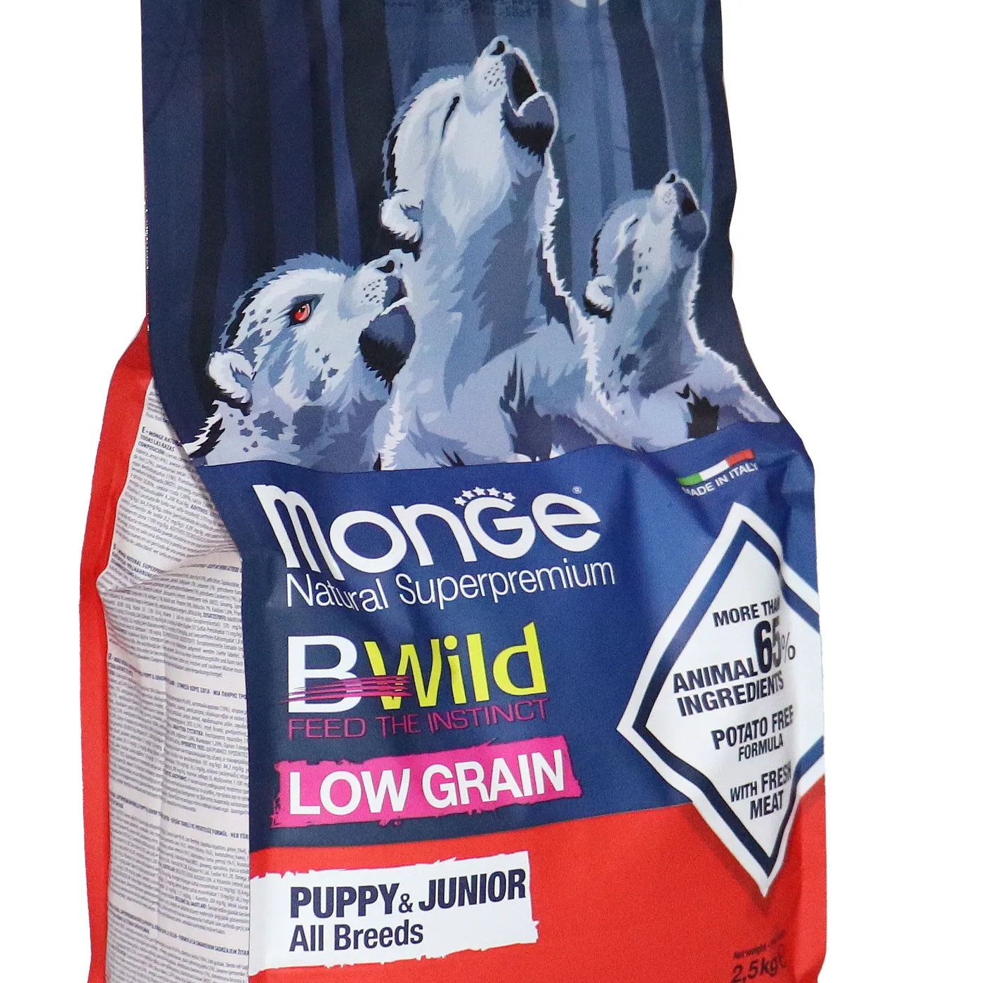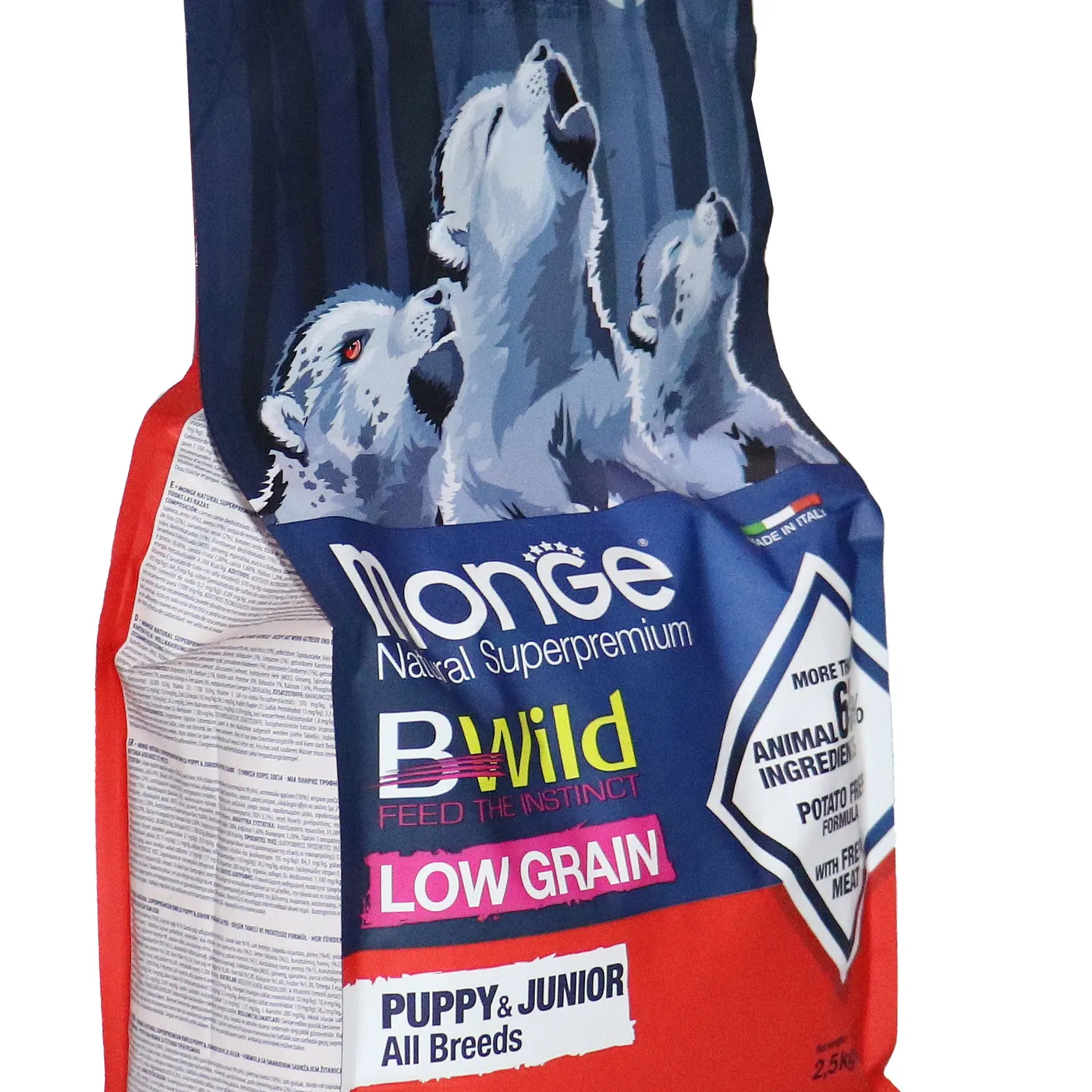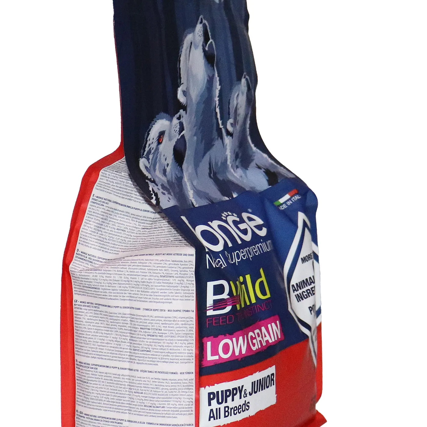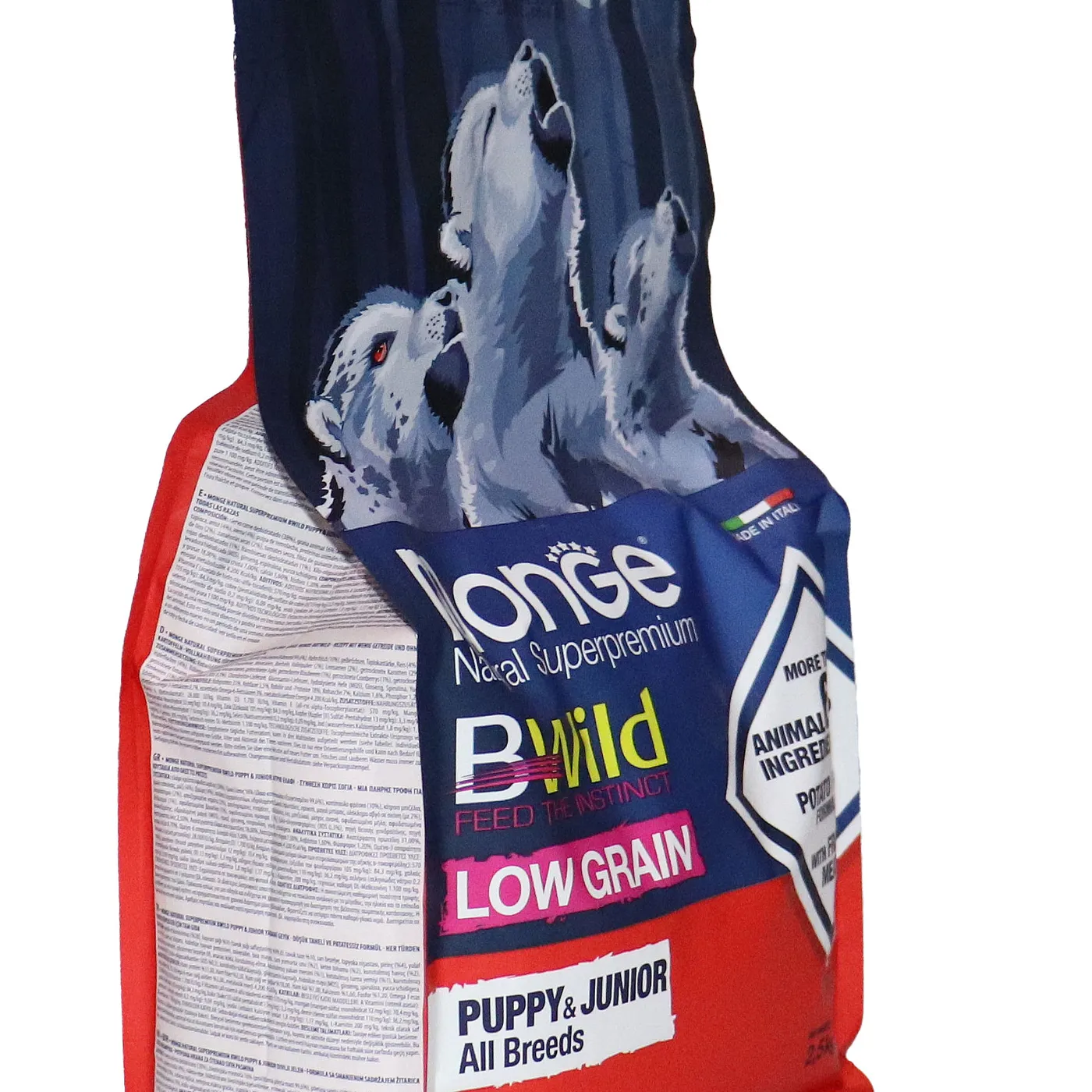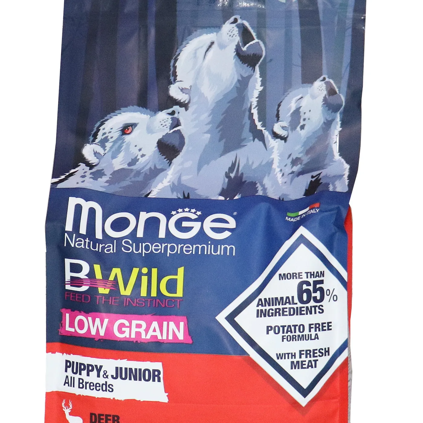 Сухой корм Monge Dog BWild LOW GRAIN Puppy & Junior — полнорационный рацион для щенков всех пород в возрасте от 1 до 12 месяцев. Основным источником белка является дегидрированное мясо оленя (38%) и свежее куриное мясо (10%). Рецептура относится к категории низкозерновых, содержит рис и овес, но не включает картофель. В состав включены пребиотики MOS и XOS для поддержания баланса кишечной микрофлоры, а также хондроитин и глюкозамин. Формула обогащена жирными кислотами Омега-3 и Омега-6, лесными ягодами и травами как источниками натуральной клетчатки.