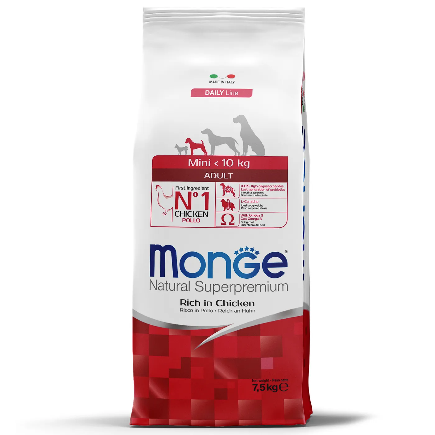 Сухой корм Monge Dog Daily Line Mini предназначен для ежедневного питания взрослых собак мелких пород с весом до 10 кг. Основным источником белка в составе является курица. Формула содержит пребиотики MOS и XOS, а также баланс жирных кислот Омега-3 и Омега-6. Корм обогащен L-карнитином, глюкозамином и хондроитина сульфатом. Произведен в Италии без искусственных красителей, ароматизаторов и ГМО.