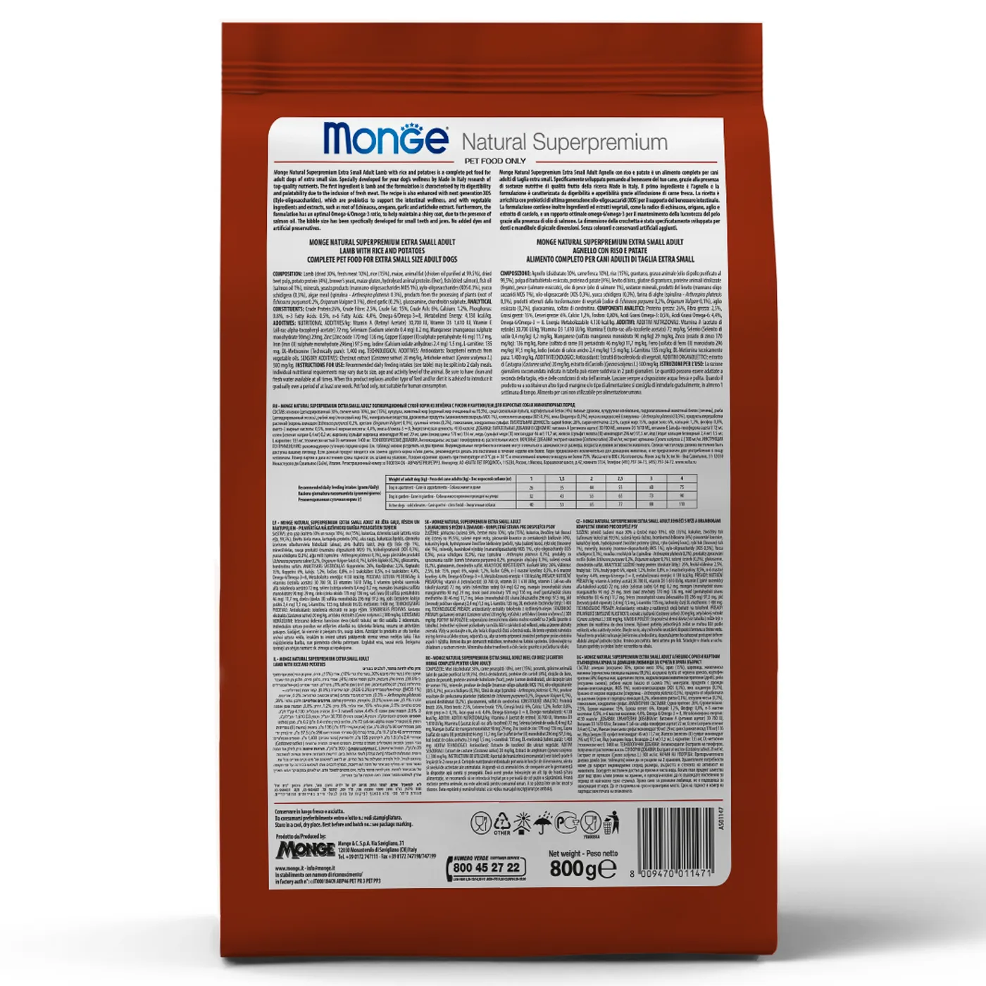 Полнорационный сухой корм для ежедневного питания взрослых собак миниатюрных пород с нормальной физической активностью. Основу рациона составляет мясо ягненка. Содержит пребиотики MOS и XOS для поддержания баланса кишечной микрофлоры. Гранулы корма имеют специальную форму и размер, адаптированные для миниатюрных пород. В состав включены растительные экстракты: артишока, эхинацеи, орегано и чеснока. Корм не содержит ГМО, искусственных красителей и ароматизаторов.