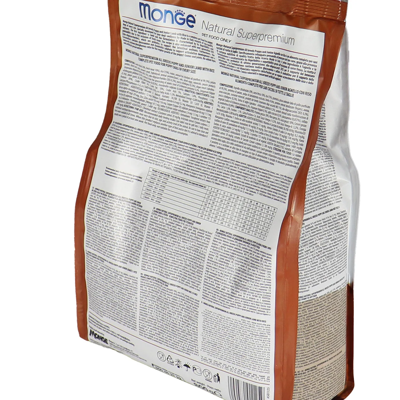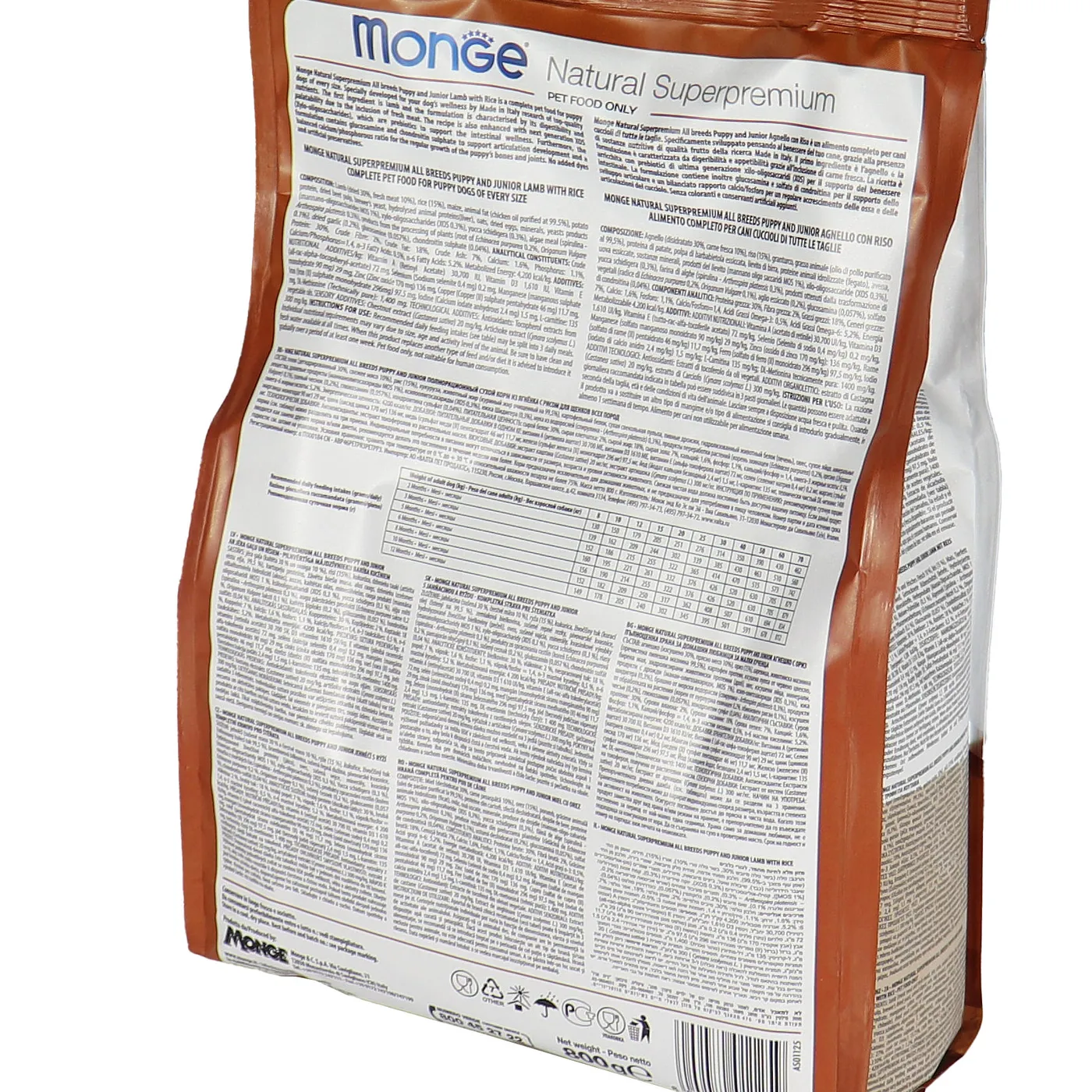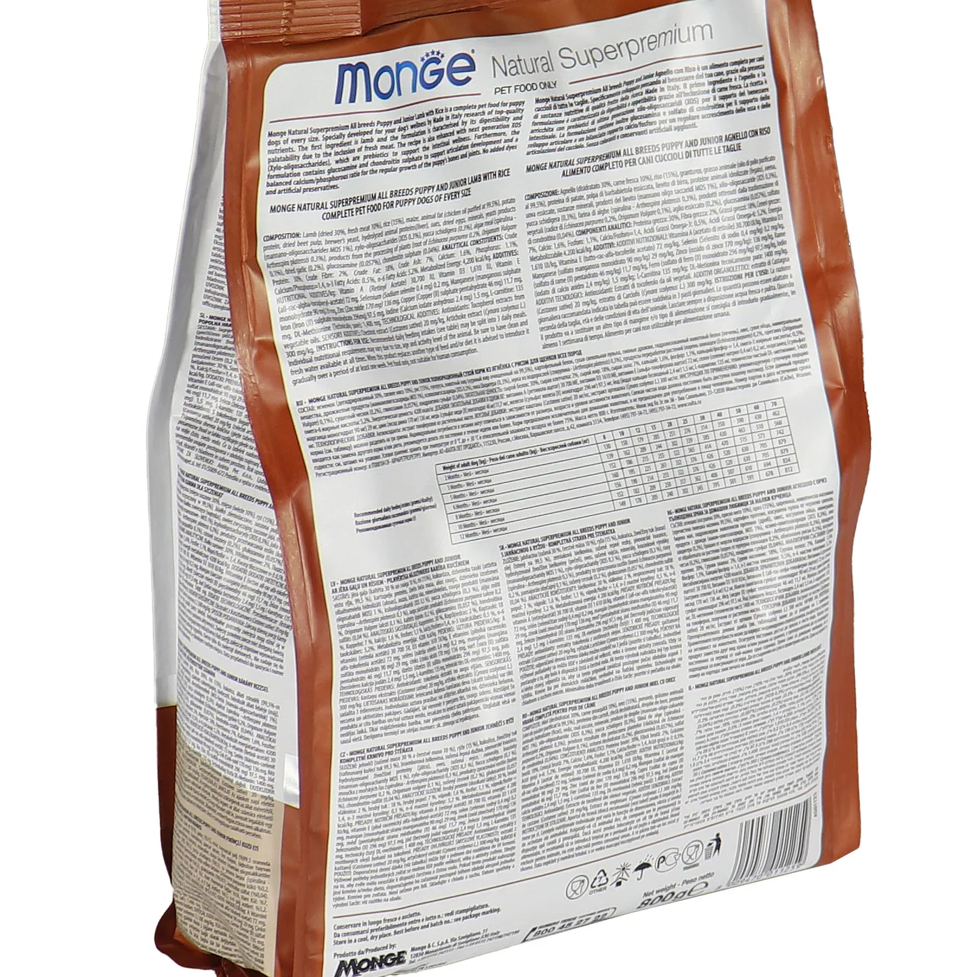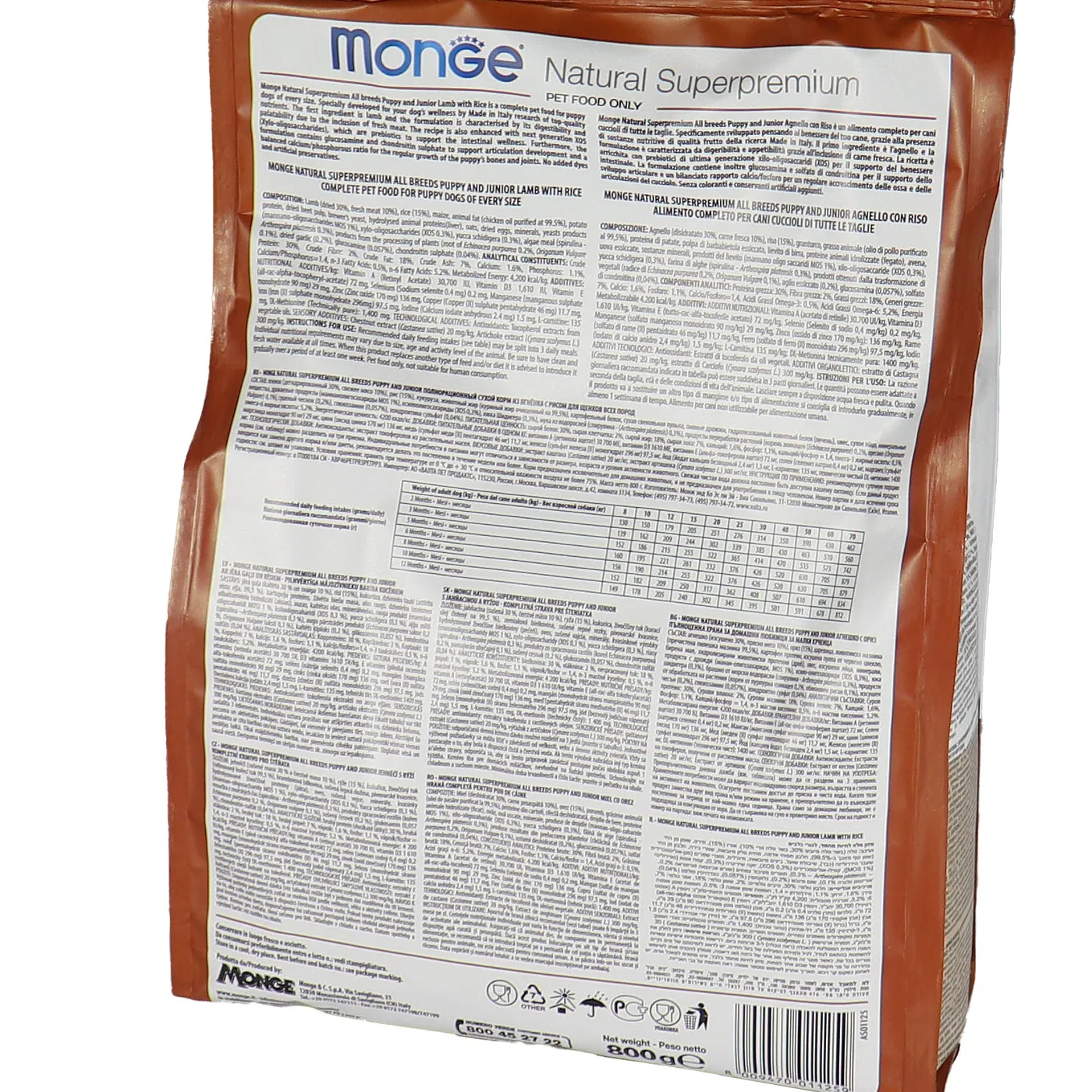 Сухой корм Monge Dog Speciality Line Puppy&Junior предназначен для ежедневного кормления щенков всех пород в возрасте от 1 до 12 месяцев. Основу рациона составляет дегидрированное и свежее мясо ягненка в сочетании с рисом. Формула включает пребиотики MOS и XOS для поддержания баланса кишечной микрофлоры, а также комплекс глюкозамина и хондроитина для здоровья суставов в период роста. В составе присутствуют растительные экстракты, такие как артишок, эхинацея, орегано и чеснок. Корм не содержит искусственных красителей, ароматизаторов и ГМО.