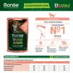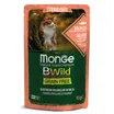 Monge Cat BWild GRAIN FREE — полнорационный влажный корм для стерилизованных кошек и кастрированных котов. Рецепт на основе лосося с креветками и овощами не содержит зерна. В состав включены пребиотические волокна X.O.S. для поддержания баланса микрофлоры кишечника и юкка Шидигера. Корм производится в Италии без искусственных красителей, ароматизаторов и ГМО.