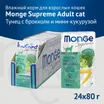 Влажный корм Monge Supreme Adult cat предназначен для взрослых кошек. Основной ингредиент — свежий тунец, составляющий 50% состава. Продукт содержит добавки брокколи и мини-кукурузы, обогащен фруктоолигосахаридами (ФОС) и витамином Е. Корм не содержит злаков, искусственных красителей, ароматизаторов и ГМО. Производится в Таиланде. Подходит для ежедневного кормления кошек среднего и крупного размера.