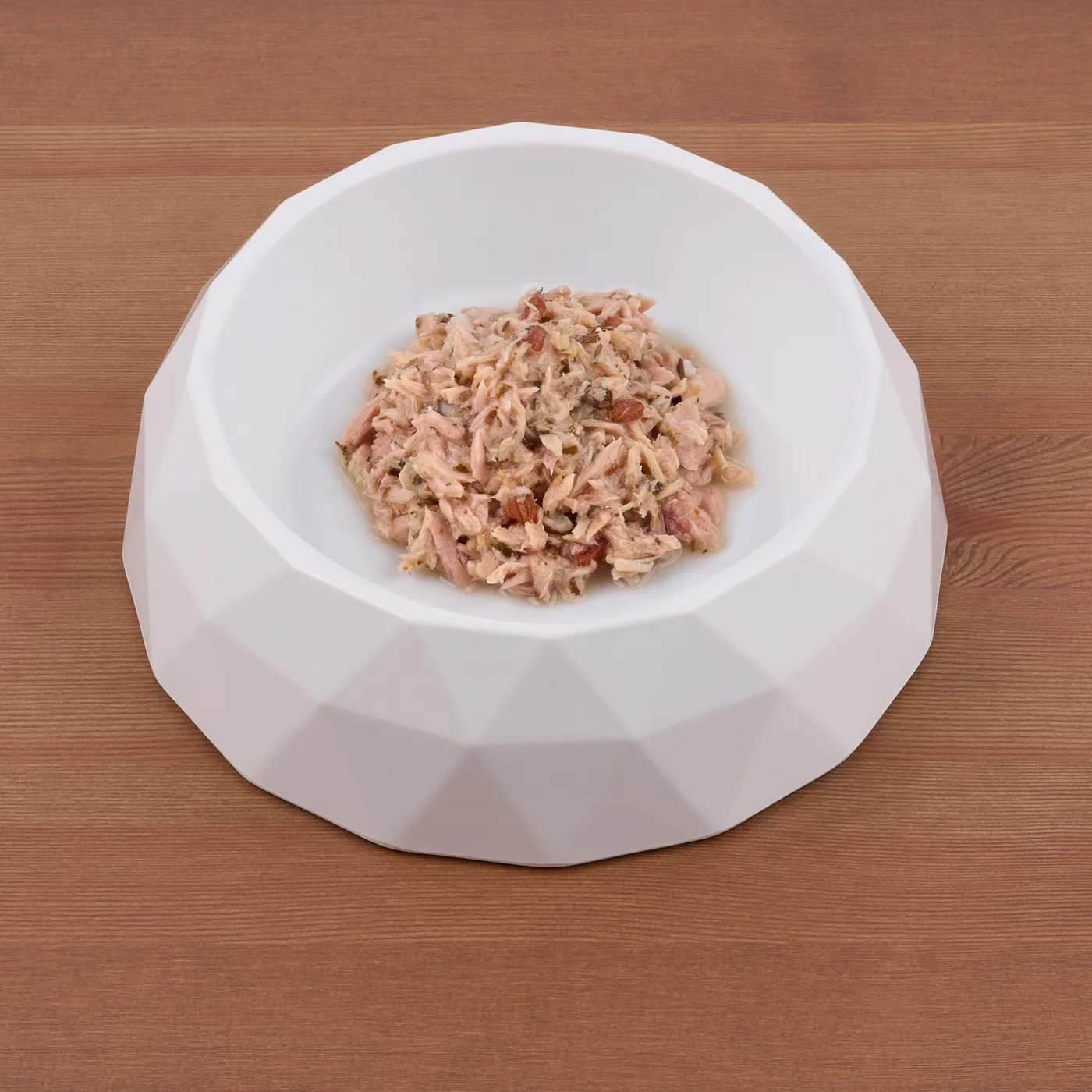 Влажный корм Monge Supreme Sterilised для стерилизованных кошек. Основной ингредиент — тунец (50%), источник белка. Содержит бурый рис (4%) и клюкву (4%). В состав включены фруктоолигосахариды (F.O.S.) и витамин Е. Не содержит зерновых культур, искусственных красителей, ароматизаторов и ГМО. Продукт приготовлен на пару.